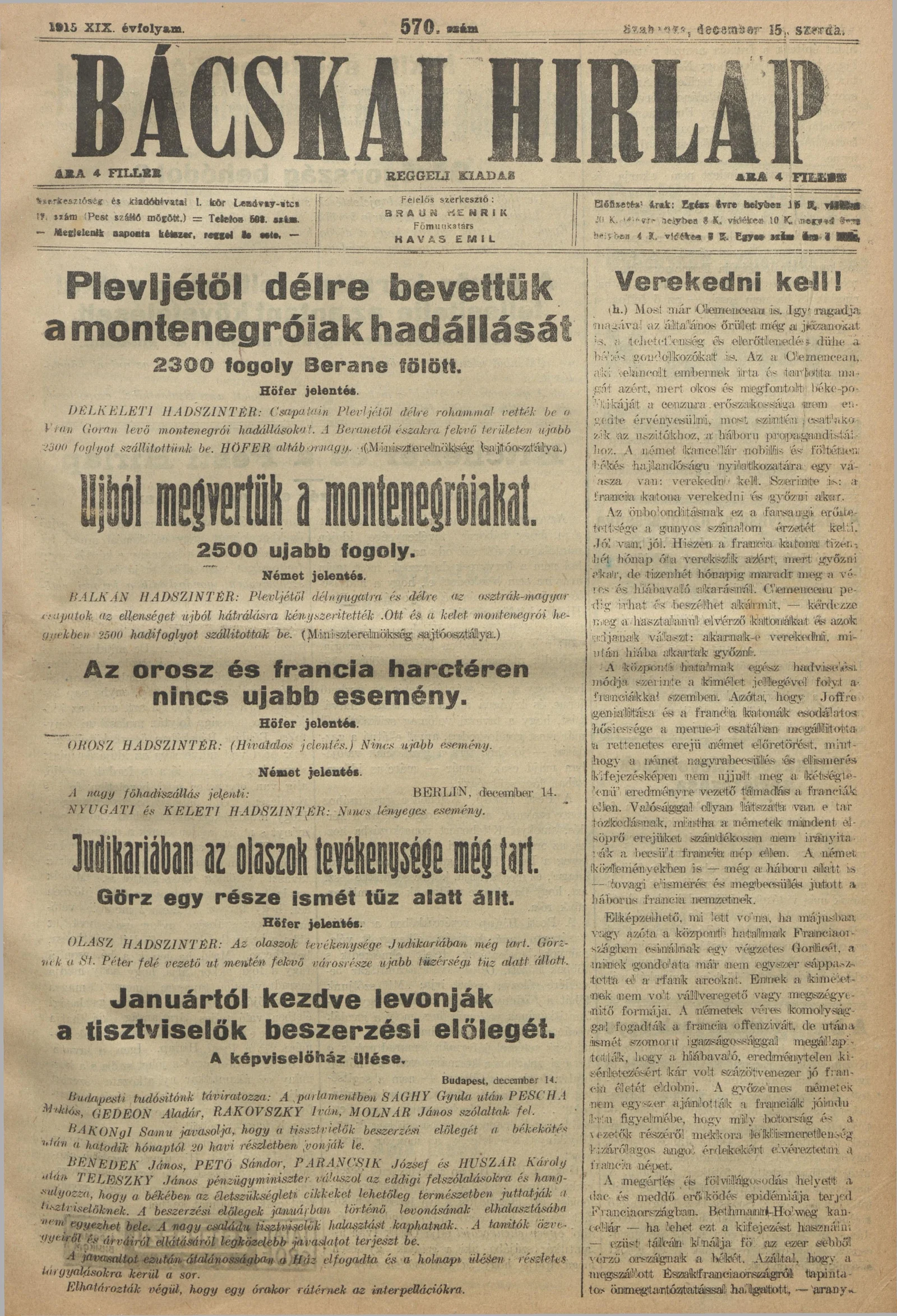 Bácskai Hirlap, 19. évf. 1915. december 15. 570. sz.