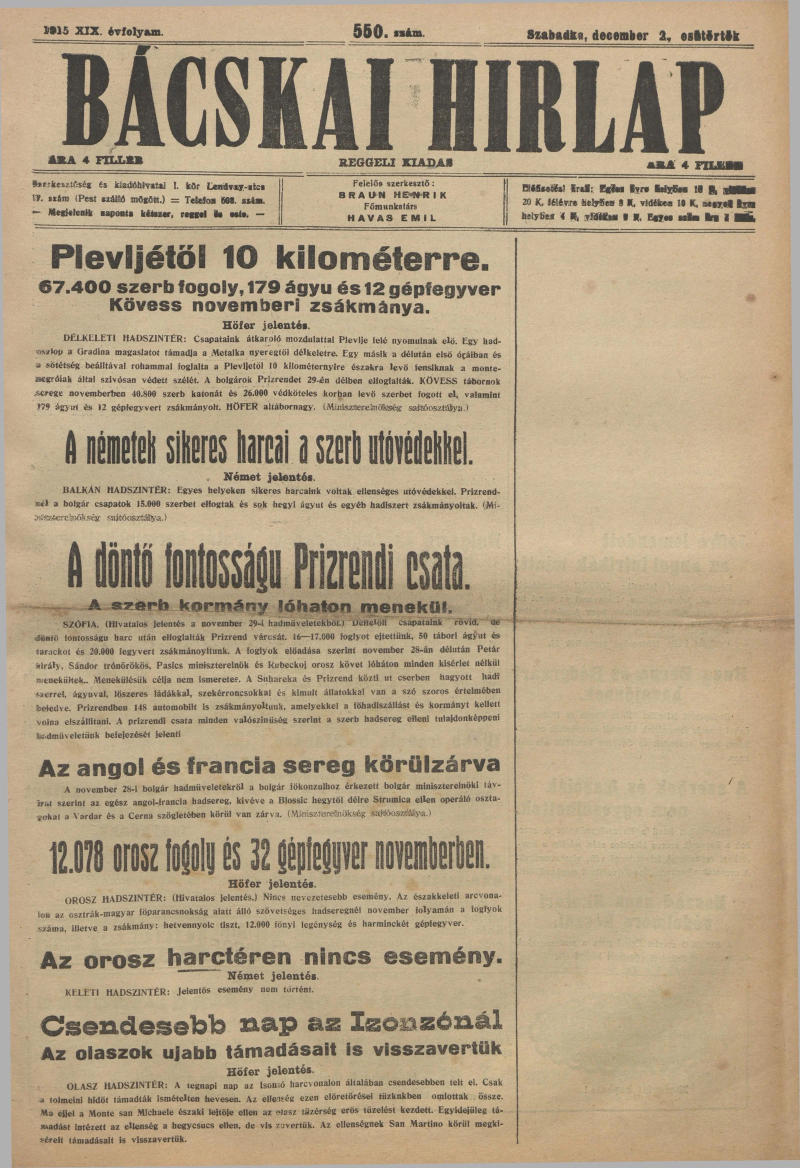 Bácskai Hirlap, 19. évf. 1915. december 2. 550. sz.