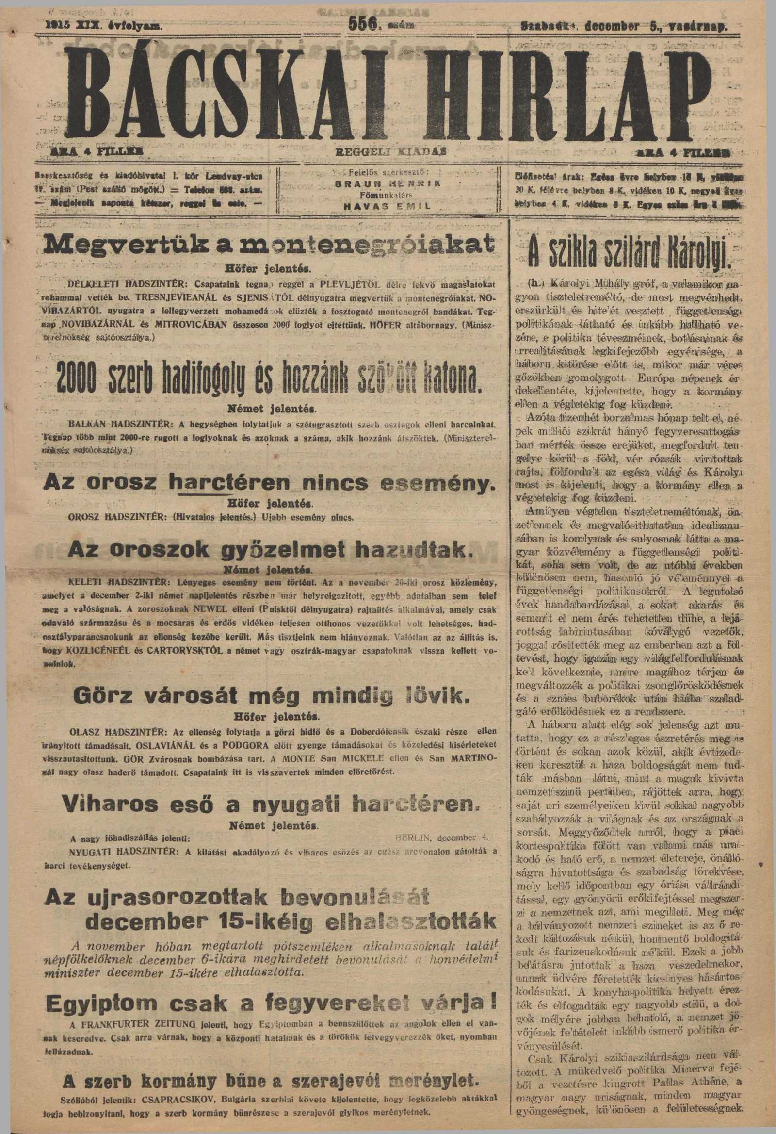 Bácskai Hirlap, 19. évf. 1915. december 5. 556. sz.