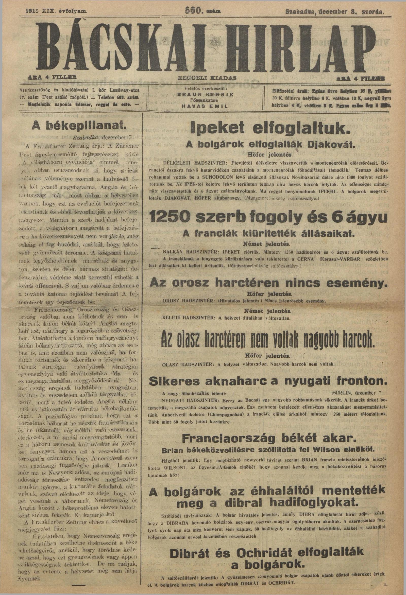 Bácskai Hirlap, 19. évf. 1915. december 8. 560. sz.