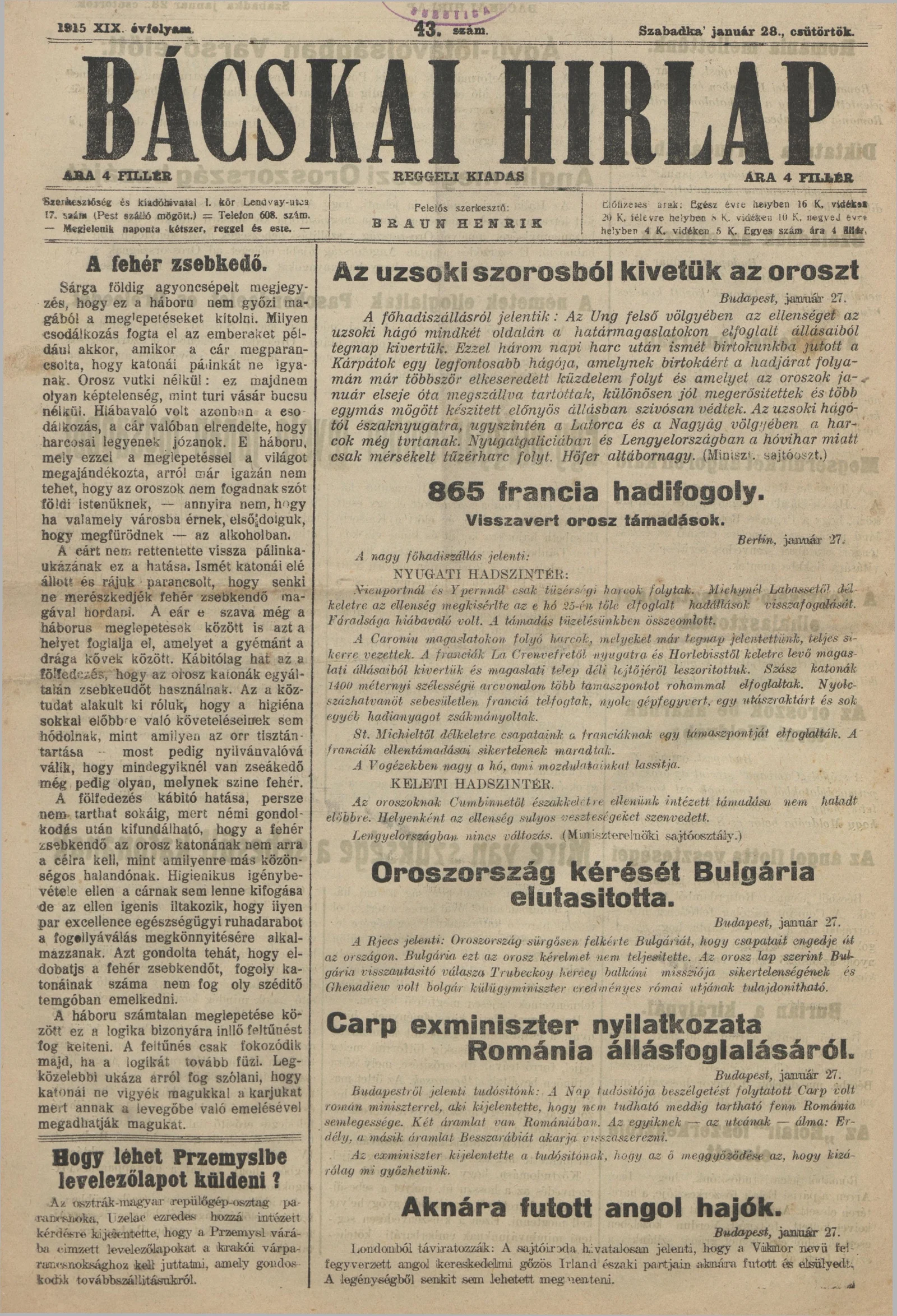 Bácskai Hirlap, 19. évf. 1915. január 28. 43. sz.