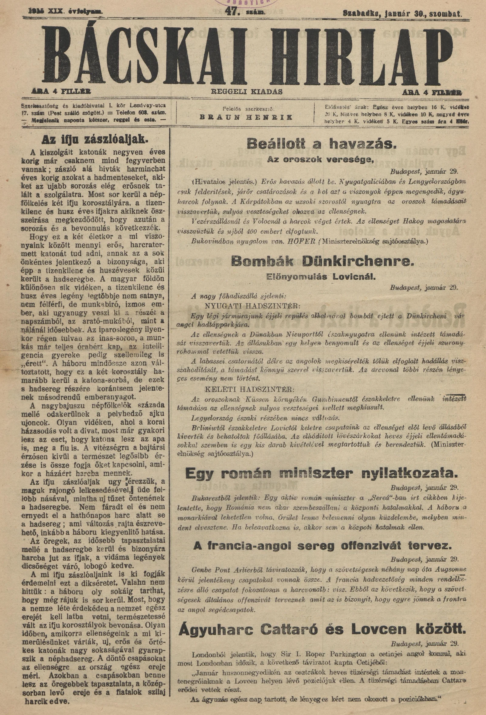 Bácskai Hirlap, 19. évf. 1915. január 30. 47. sz.