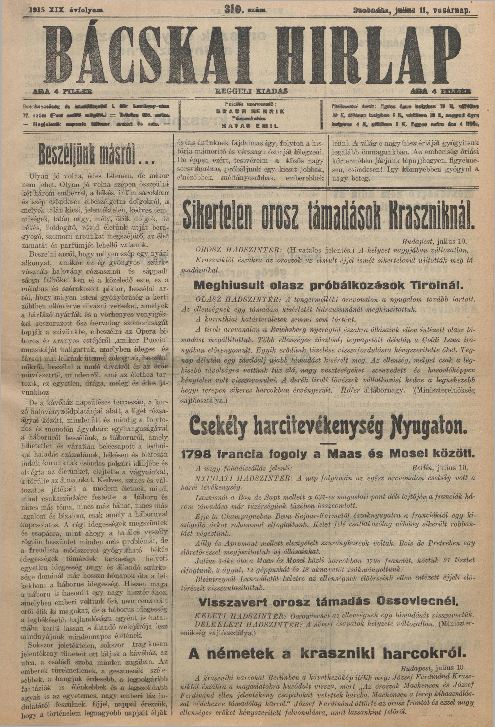 Bácskai Hirlap, 19. évf. 1915. július 11. 310. sz.