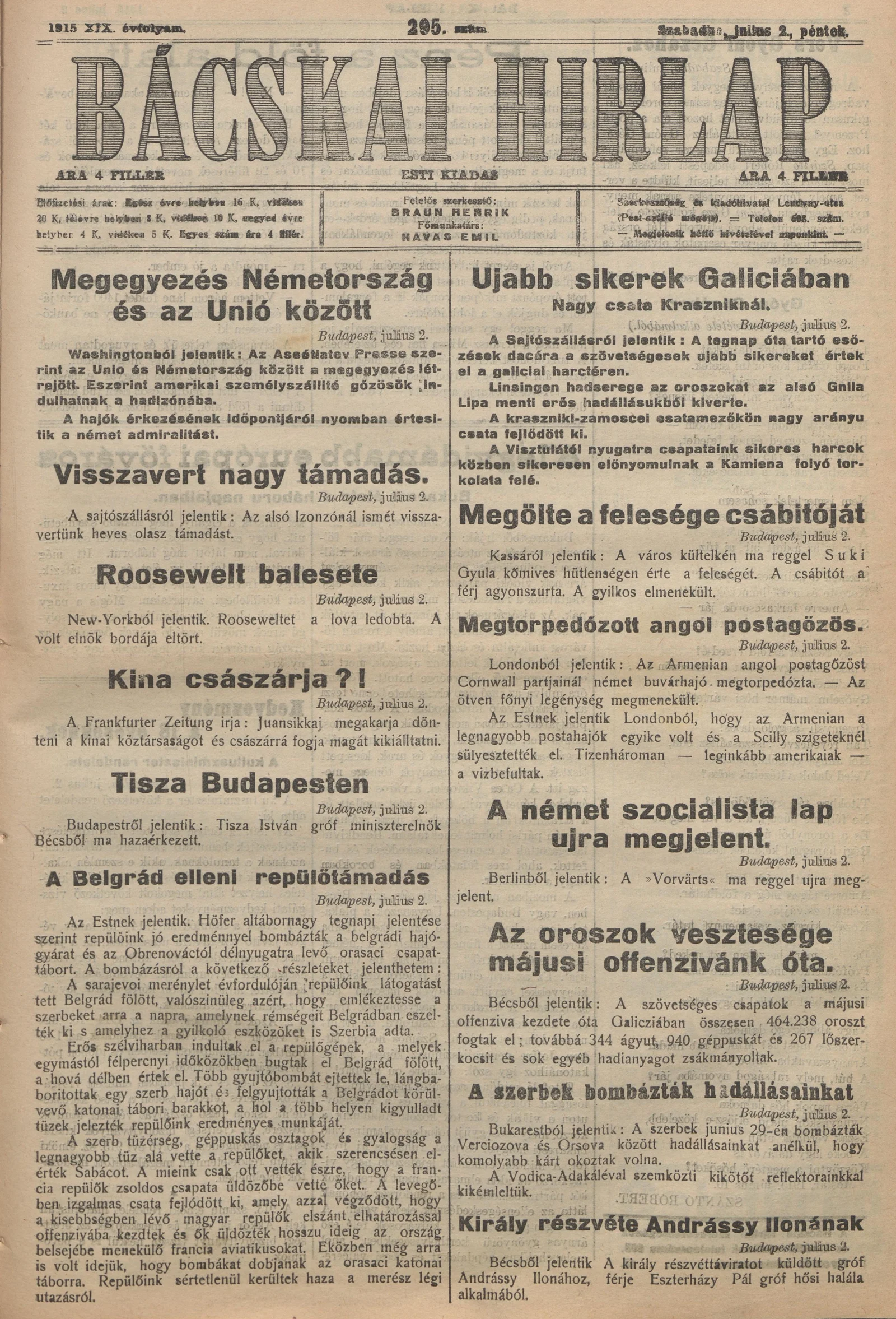 Bácskai Hirlap, 19. évf. 1915. július 2. 295. sz.