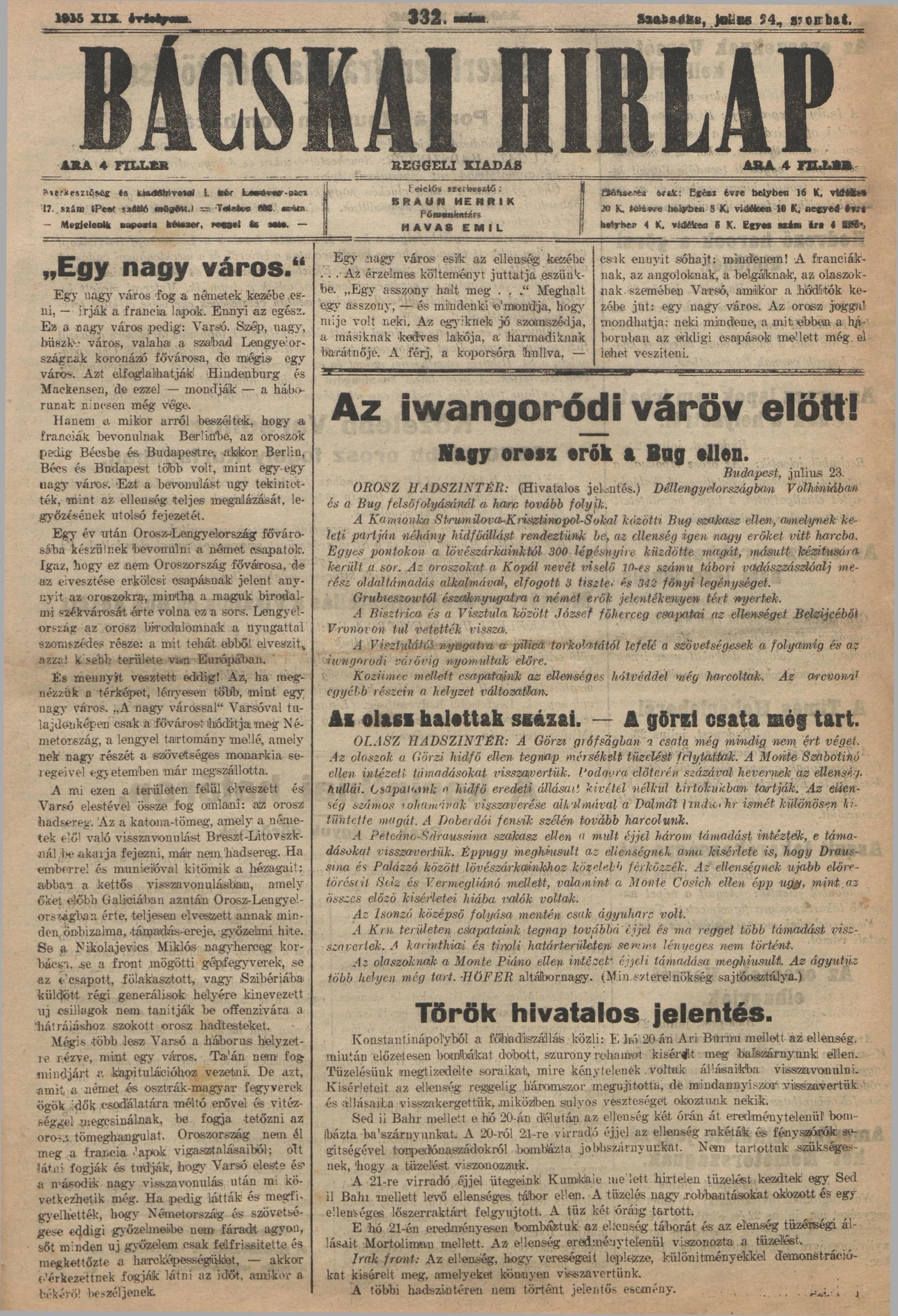 Bácskai Hirlap, 19. évf. 1915. július 24. 332. sz.