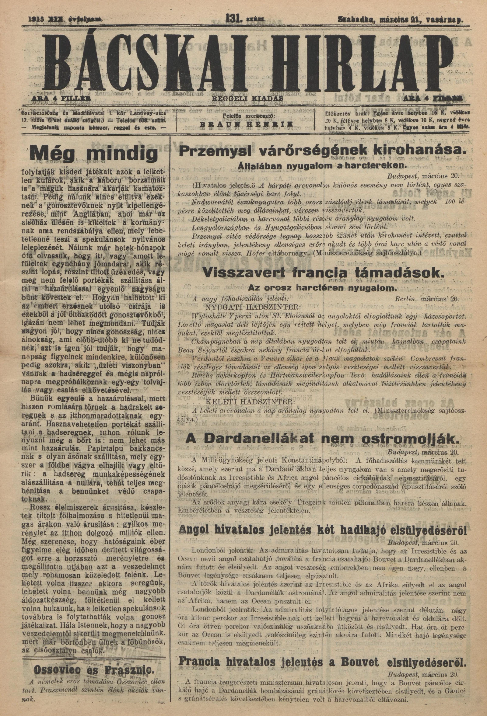 Bácskai Hirlap, 19. évf. 1915. március 21. 131. sz.