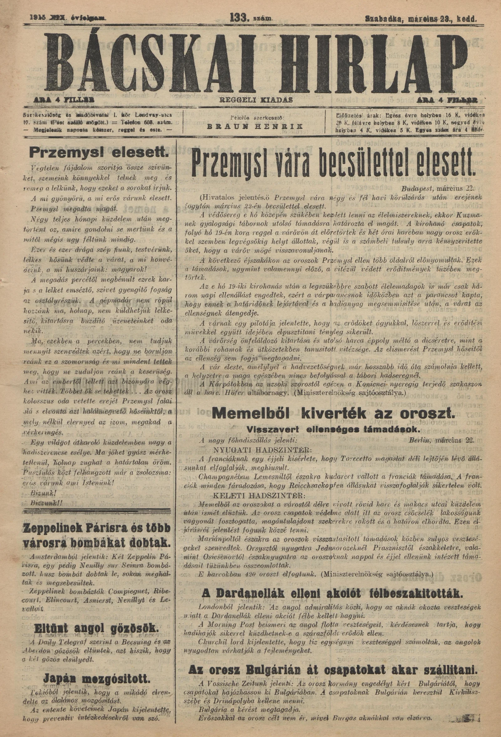 Bácskai Hirlap, 19. évf. 1915. március 23. 133. sz.