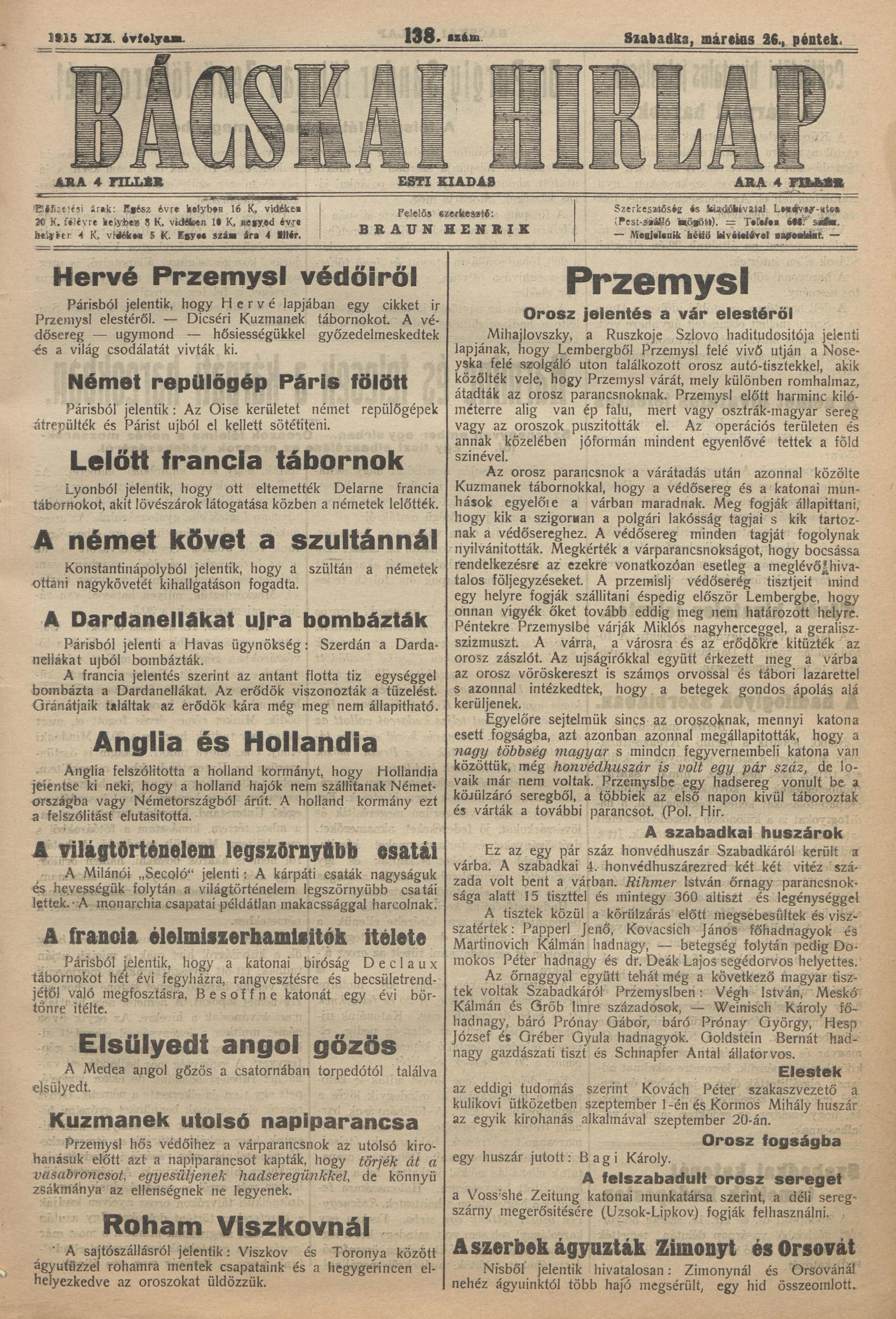 Bácskai Hirlap, 19. évf. 1915. március 26. 138. sz.