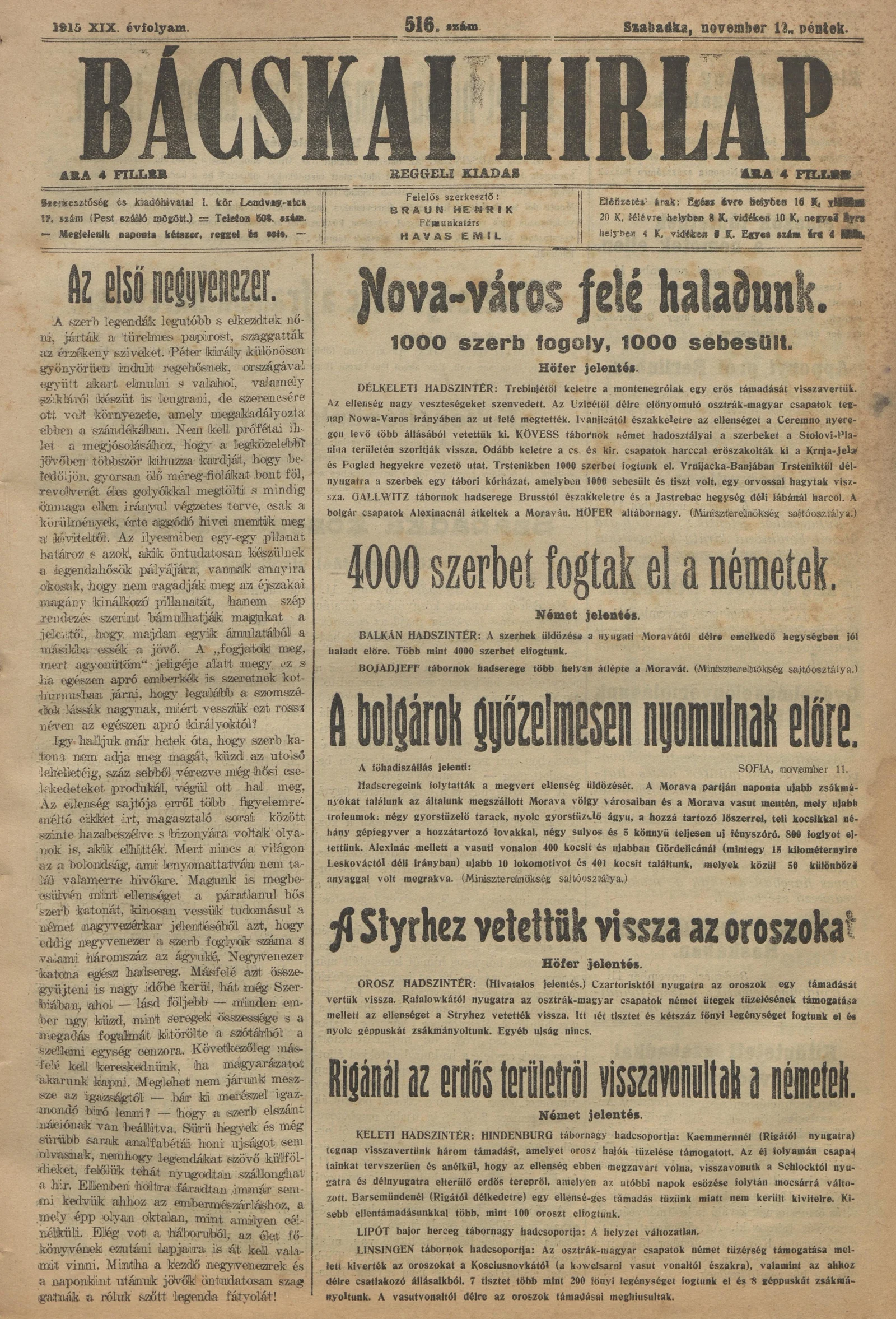 Bácskai Hirlap, 19. évf. 1915. november 12. 516. sz.