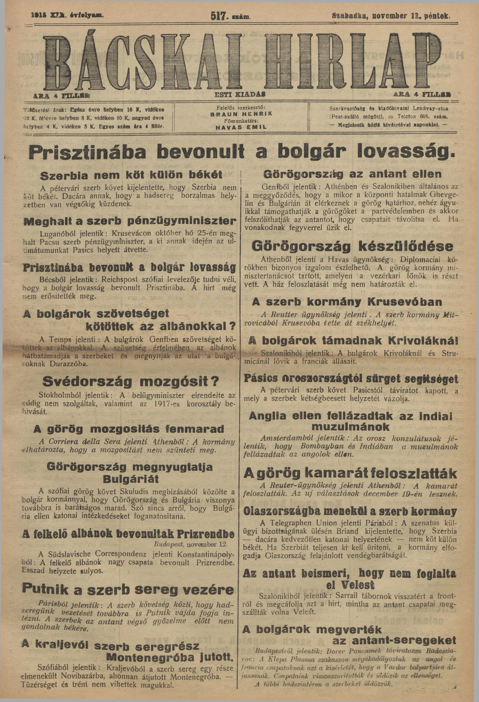 Bácskai Hirlap, 19. évf. 1915. november 12. 517. sz.