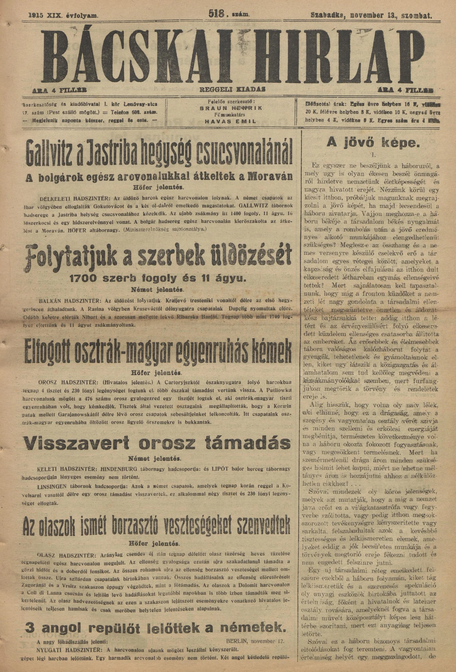 Bácskai Hirlap, 19. évf. 1915. november 13. 518. sz.