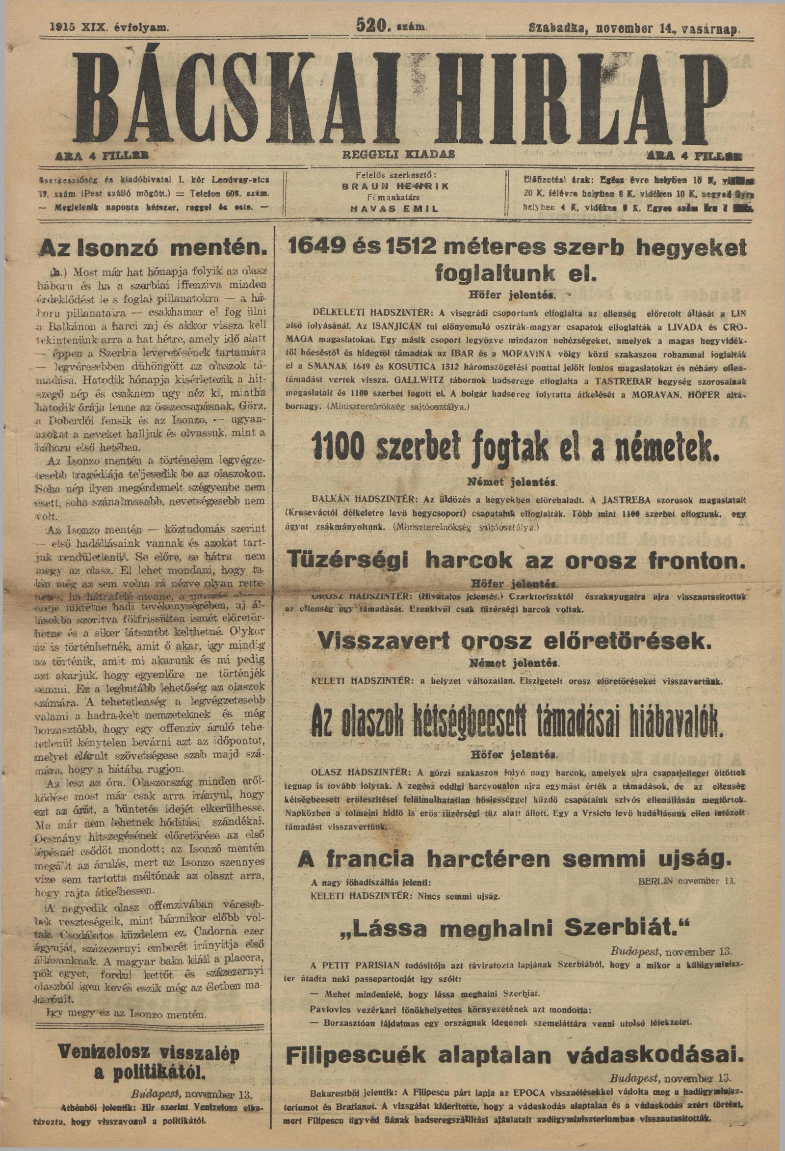 Bácskai Hirlap, 19. évf. 1915. november 14. 520. sz.