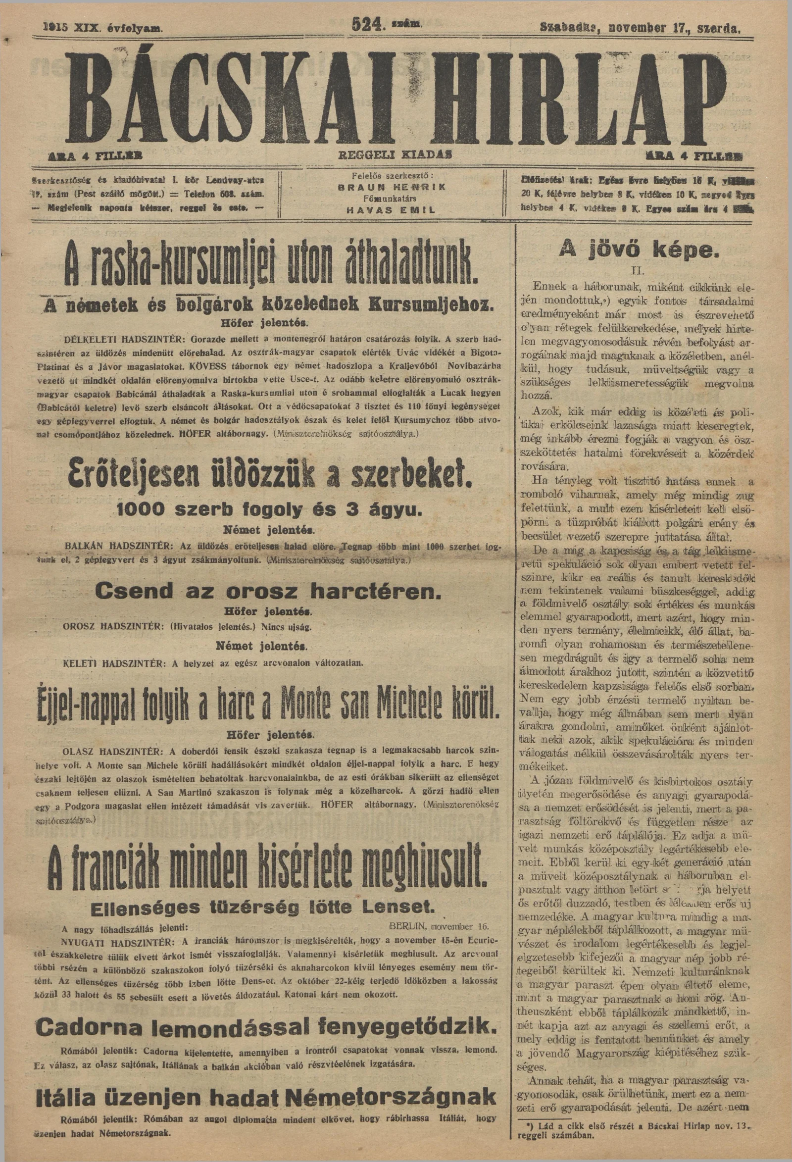 Bácskai Hirlap, 19. évf. 1915. november 17. 524. sz.