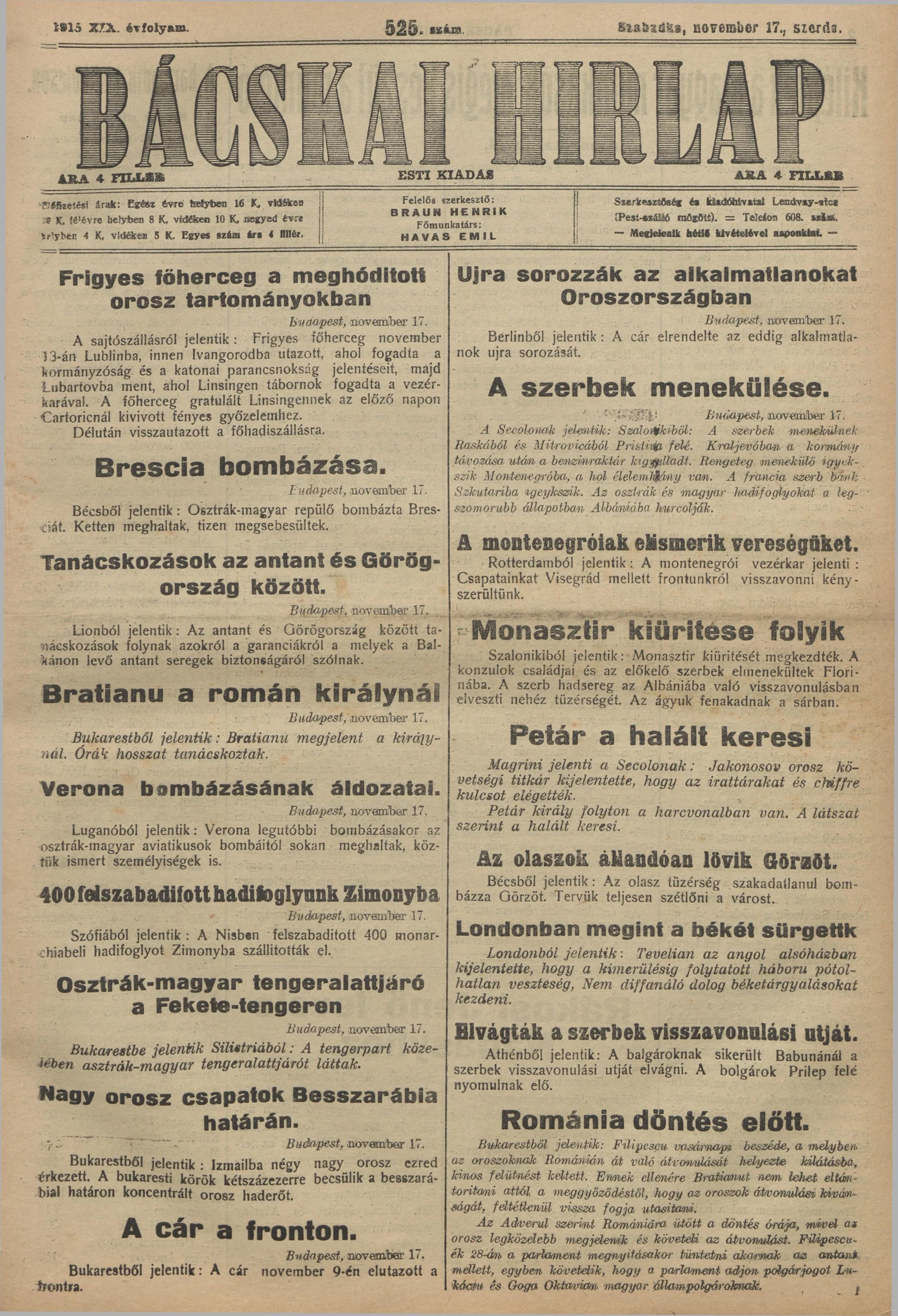 Bácskai Hirlap, 19. évf. 1915. november 17. 525. sz.