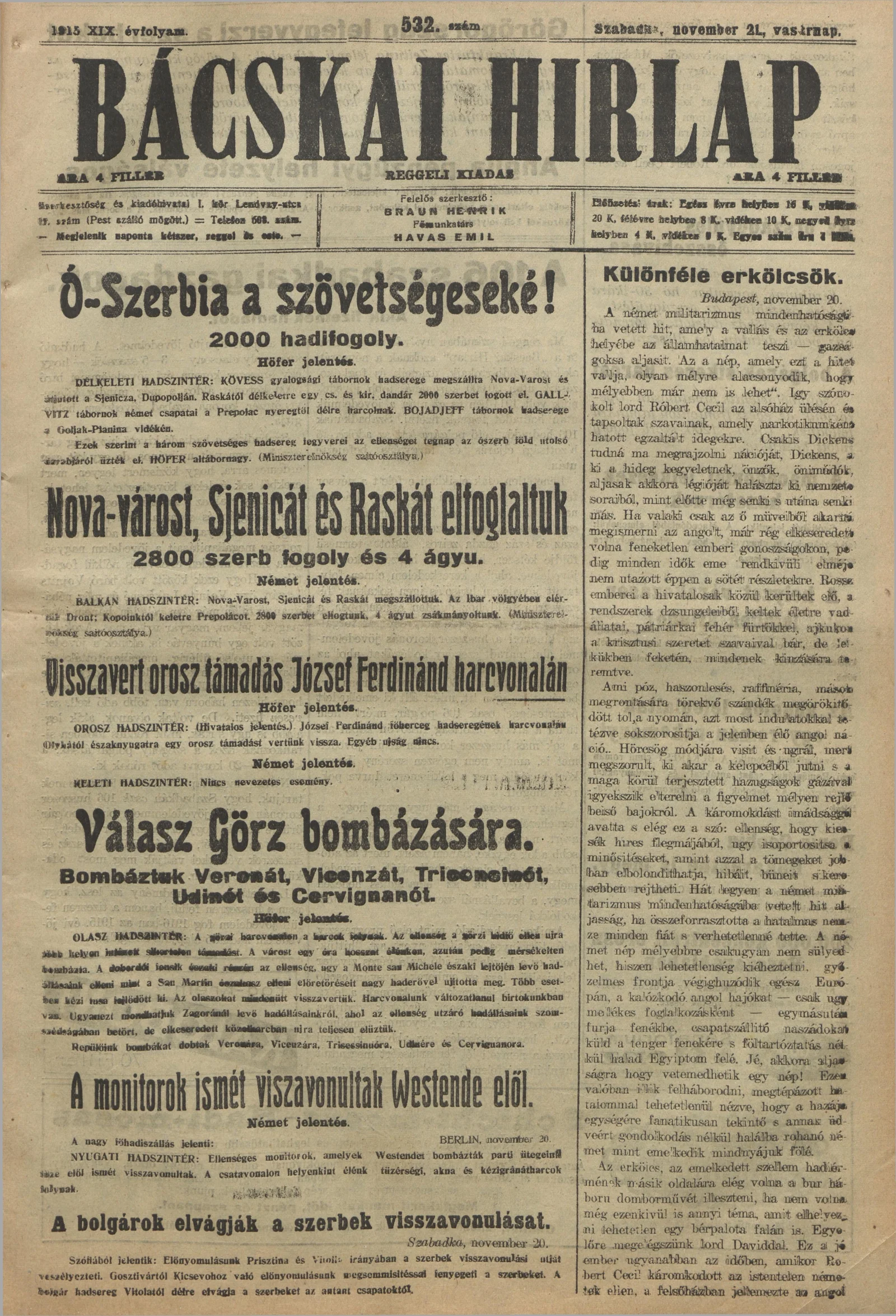 Bácskai Hirlap, 19. évf. 1915. november 21. 532. sz.