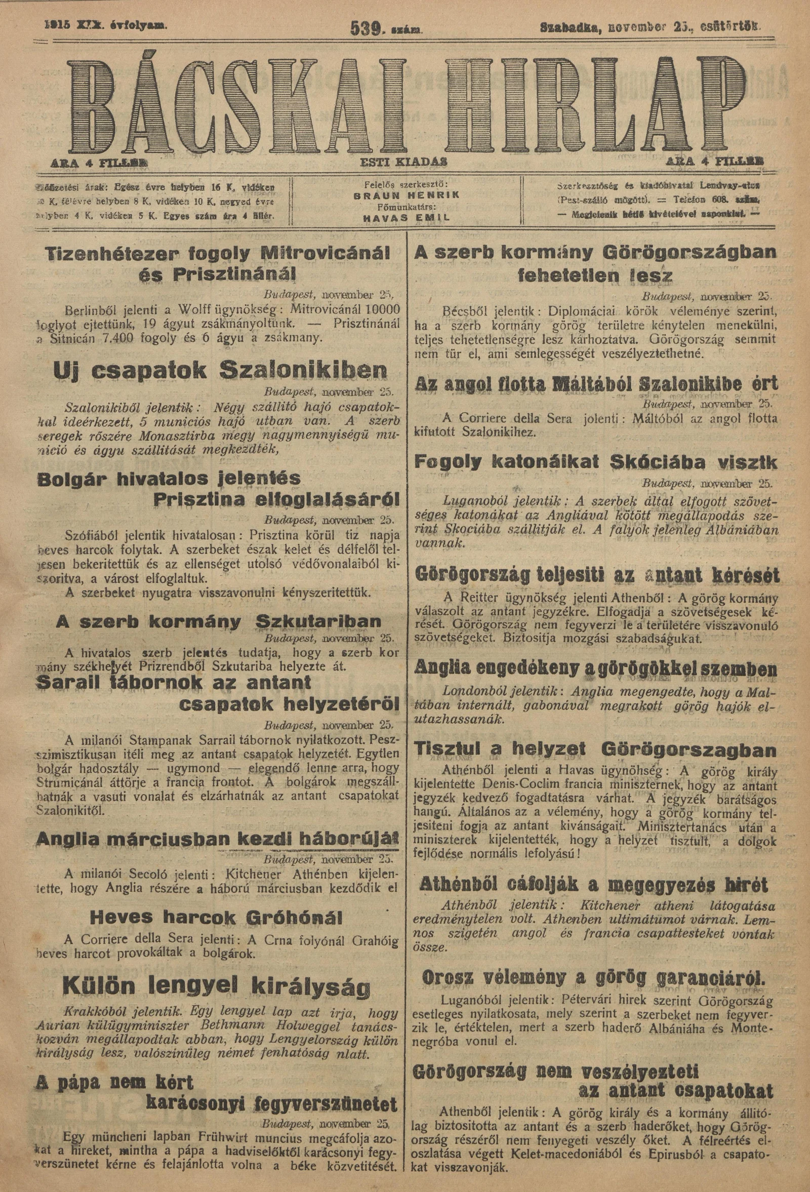 Bácskai Hirlap, 19. évf. 1915. november 25. 539. sz.