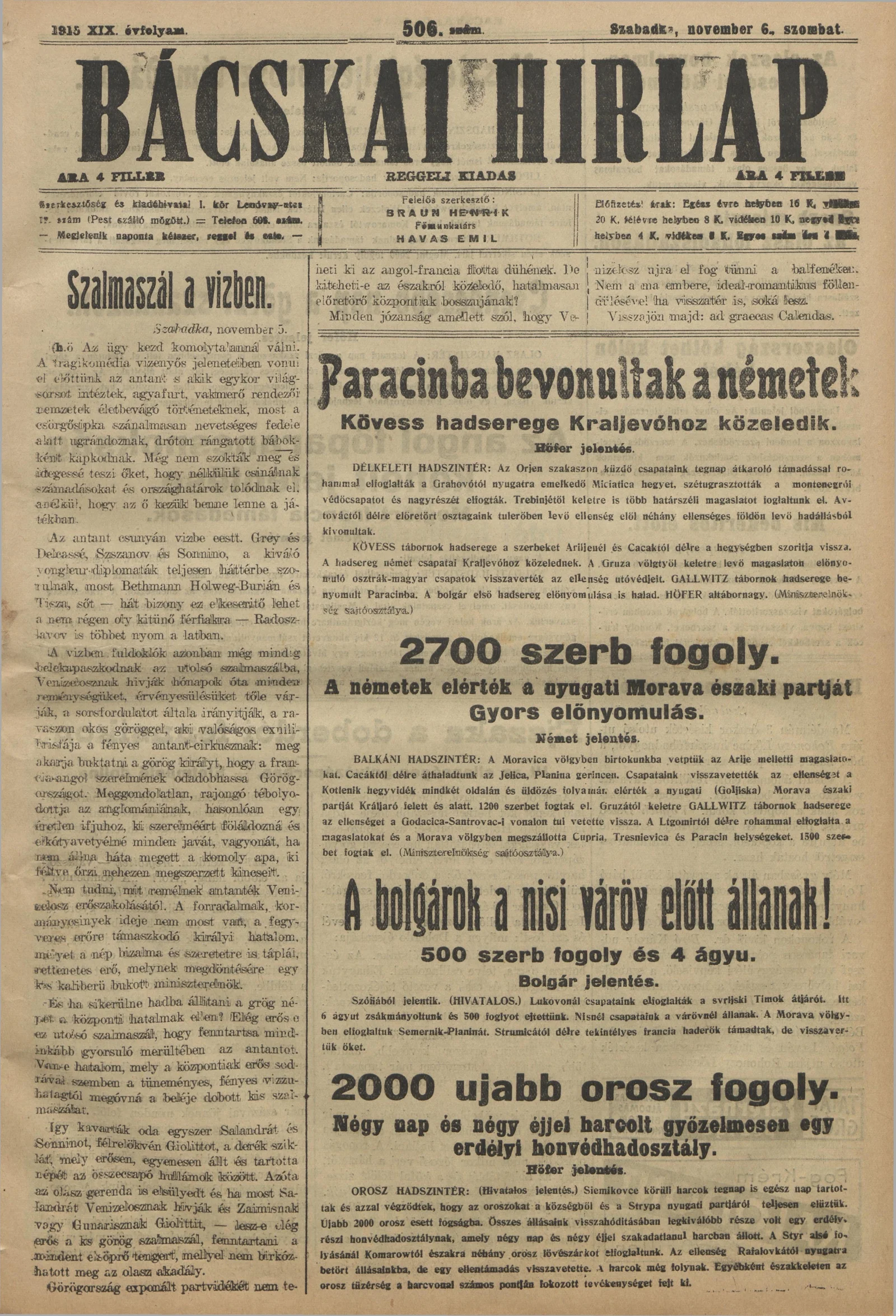 Bácskai Hirlap, 19. évf. 1915. november 6. 506. sz.