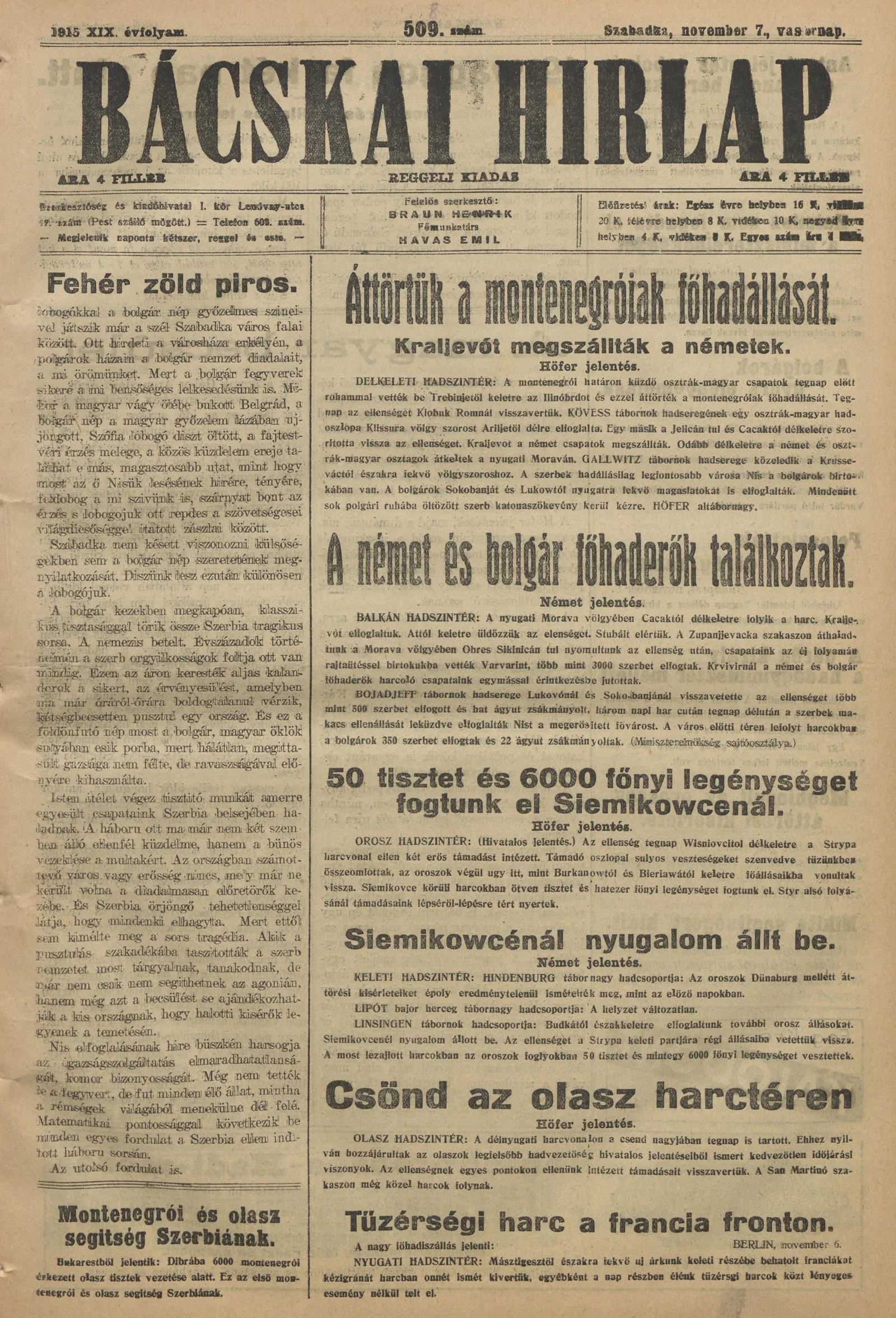 Bácskai Hirlap, 19. évf. 1915. november 7. 508. sz.