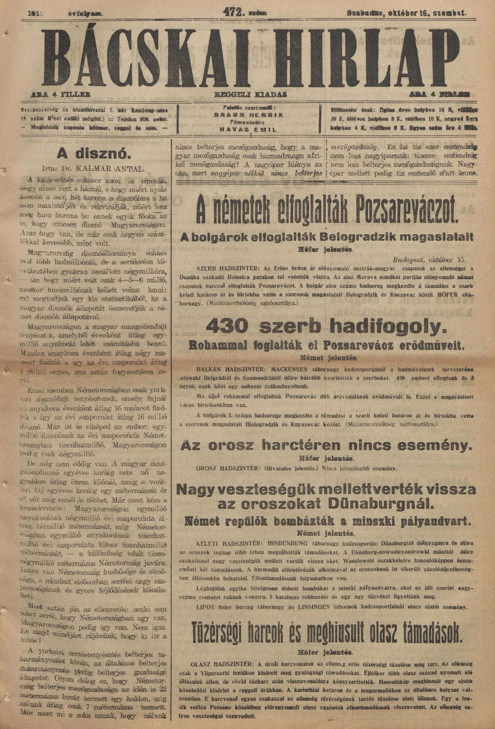 Bácskai Hirlap, 19. évf. 1915. október 16. 472. sz.