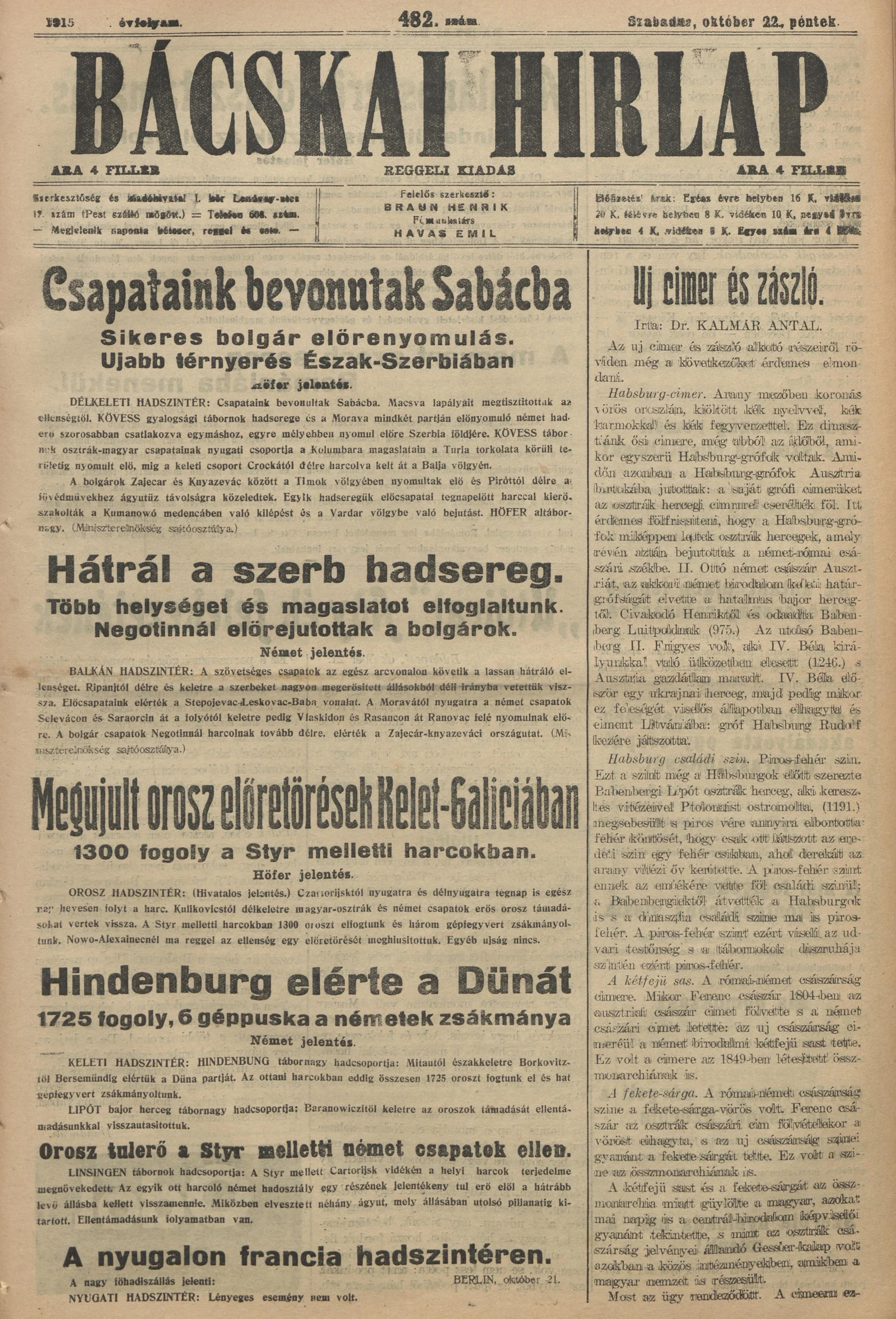 Bácskai Hirlap, 19. évf. 1915. október 22. 482. sz.