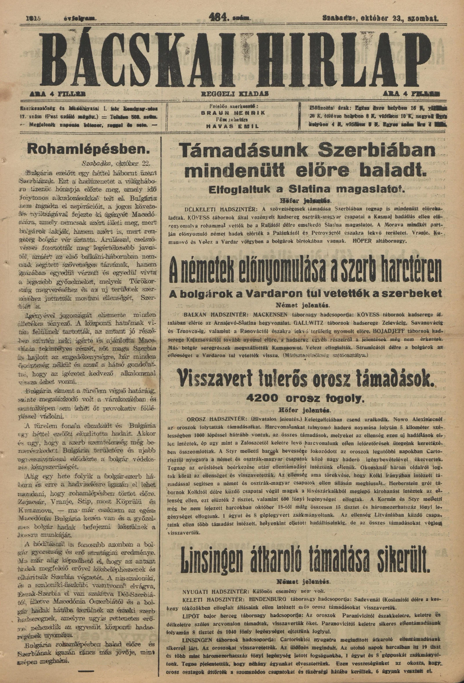 Bácskai Hirlap, 19. évf. 1915. október 23. 484. sz.