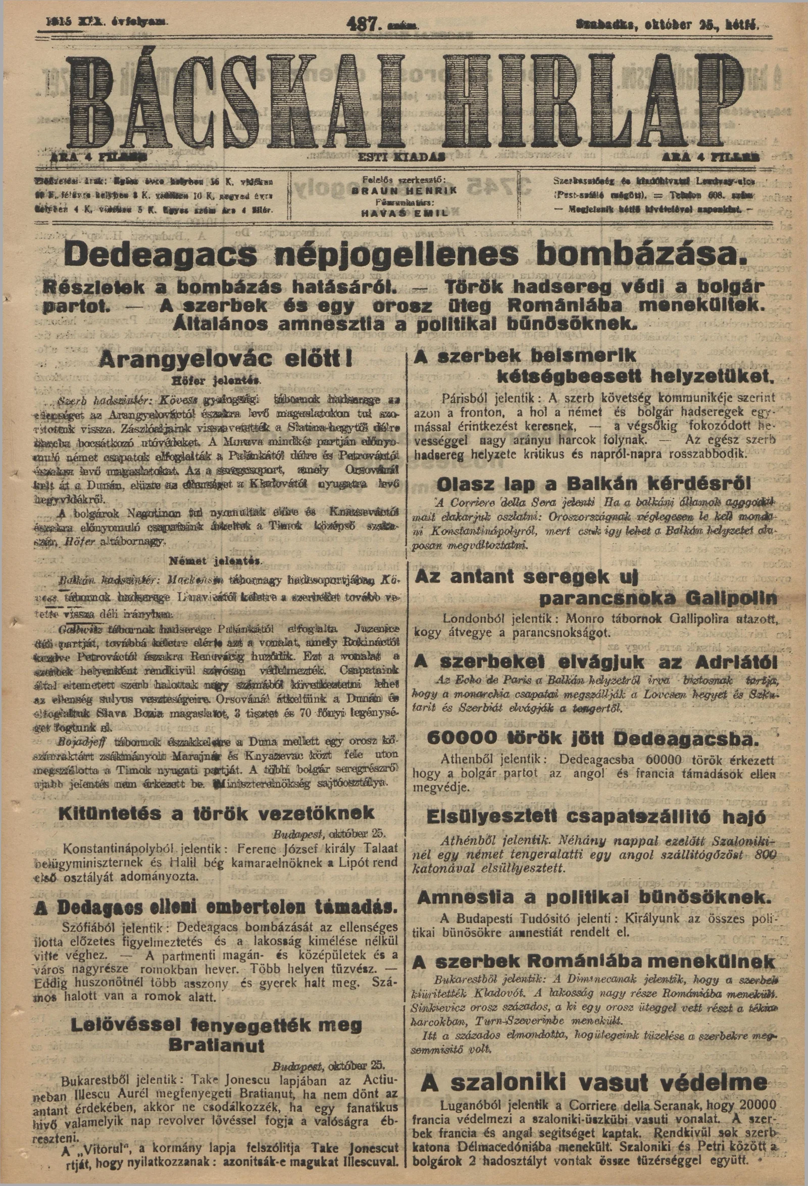 Bácskai Hirlap, 19. évf. 1915. október 25. 487. sz.