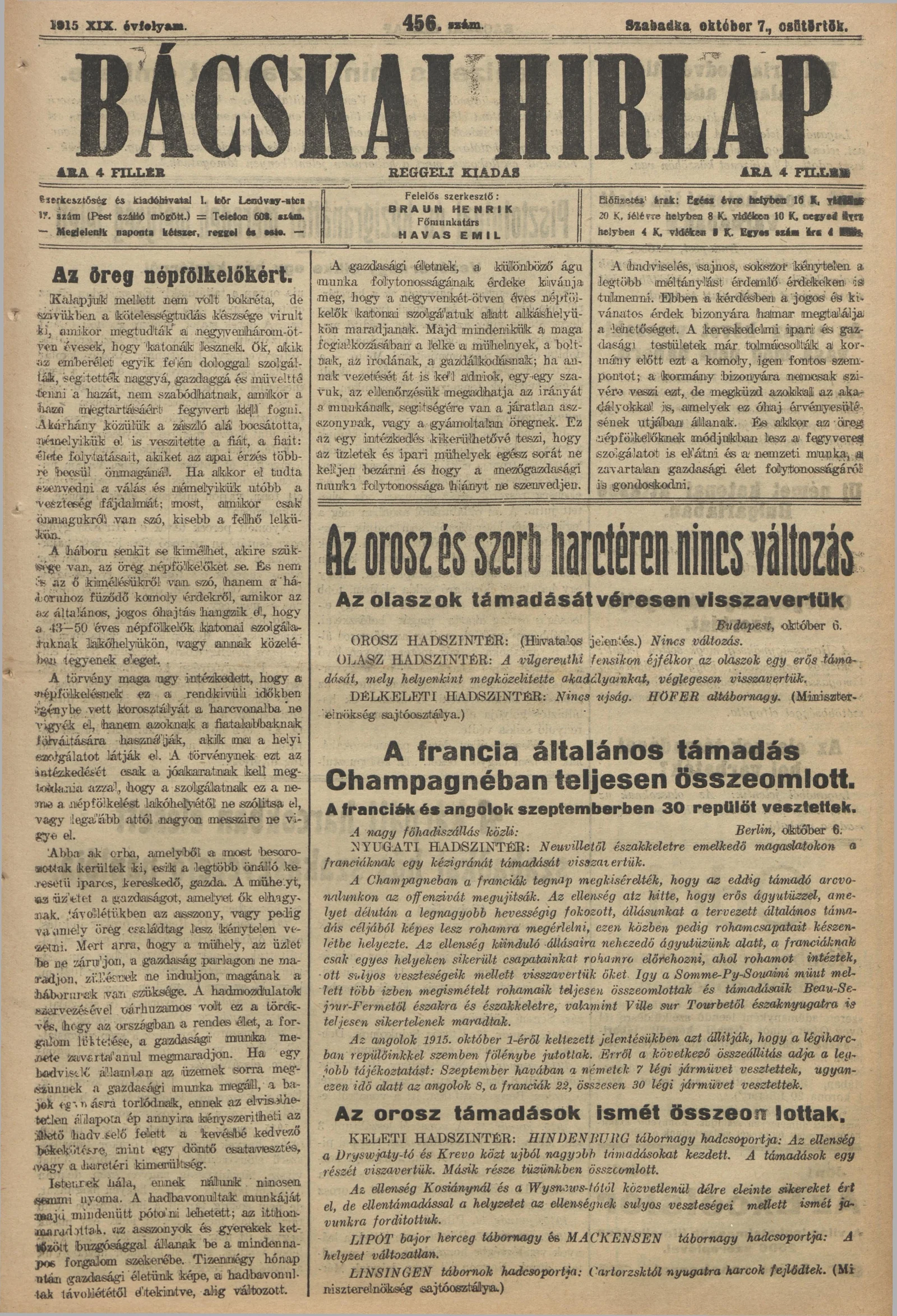 Bácskai Hirlap, 19. évf. 1915. október 7. 456. sz.