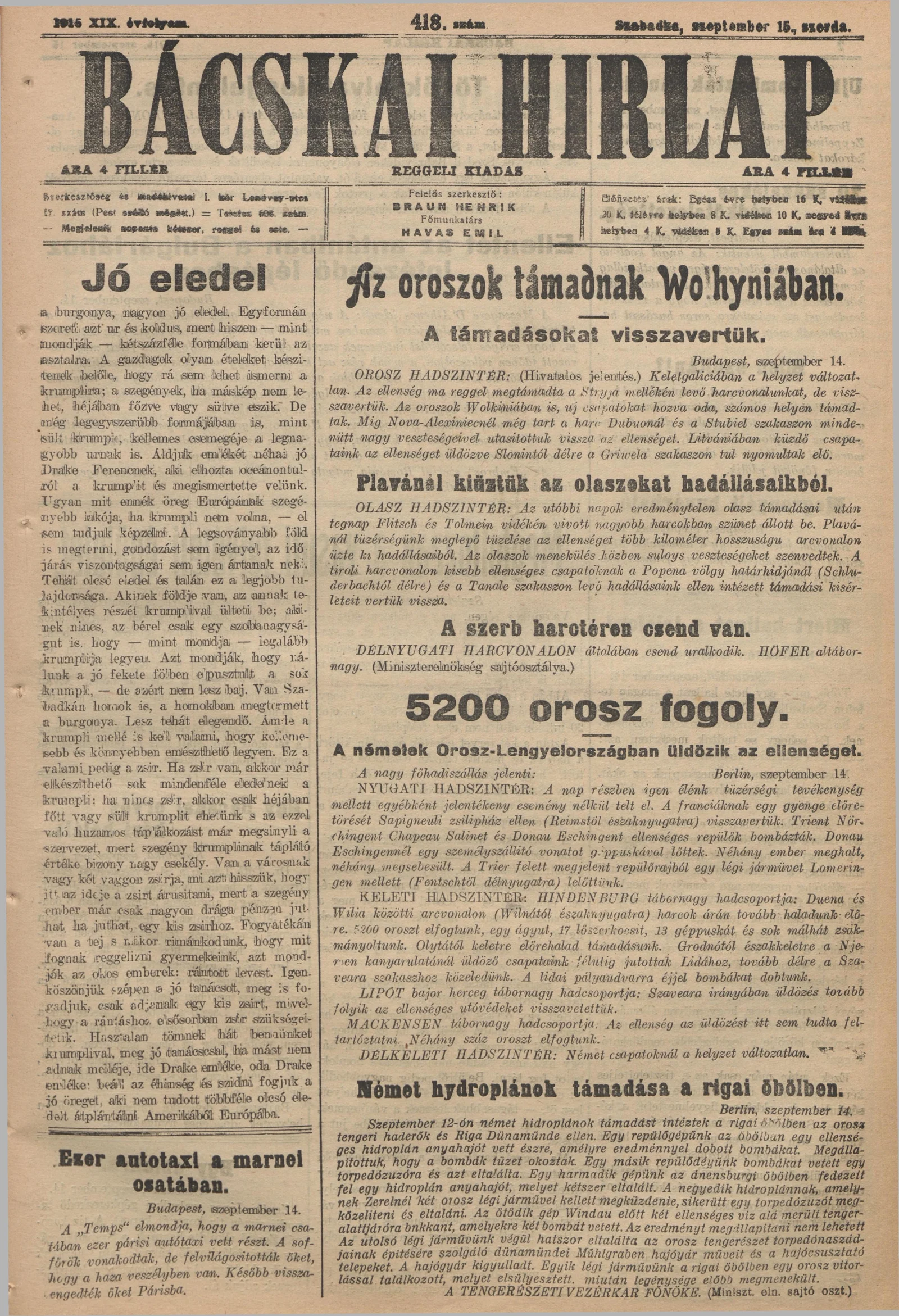 Bácskai Hirlap, 19. évf. 1915. szeptember 15. 418. sz.