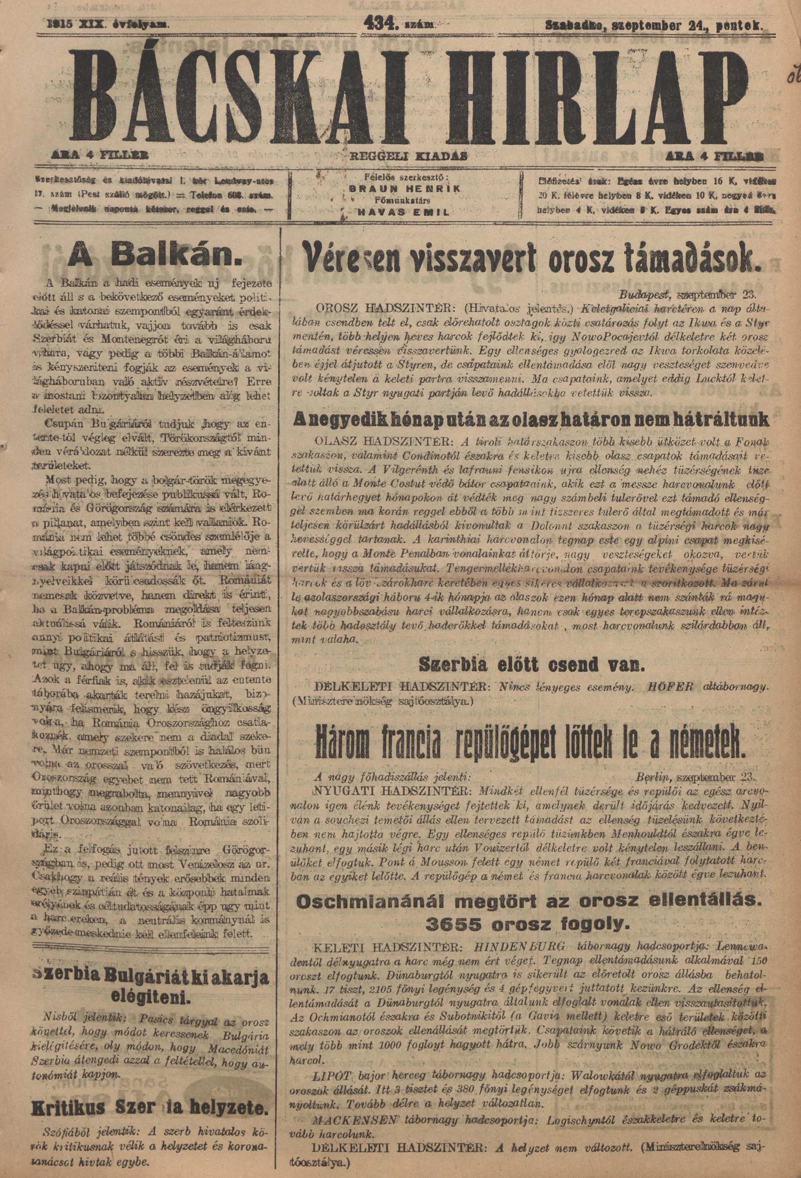 Bácskai Hirlap, 19. évf. 1915. szeptember 24. 434. sz.