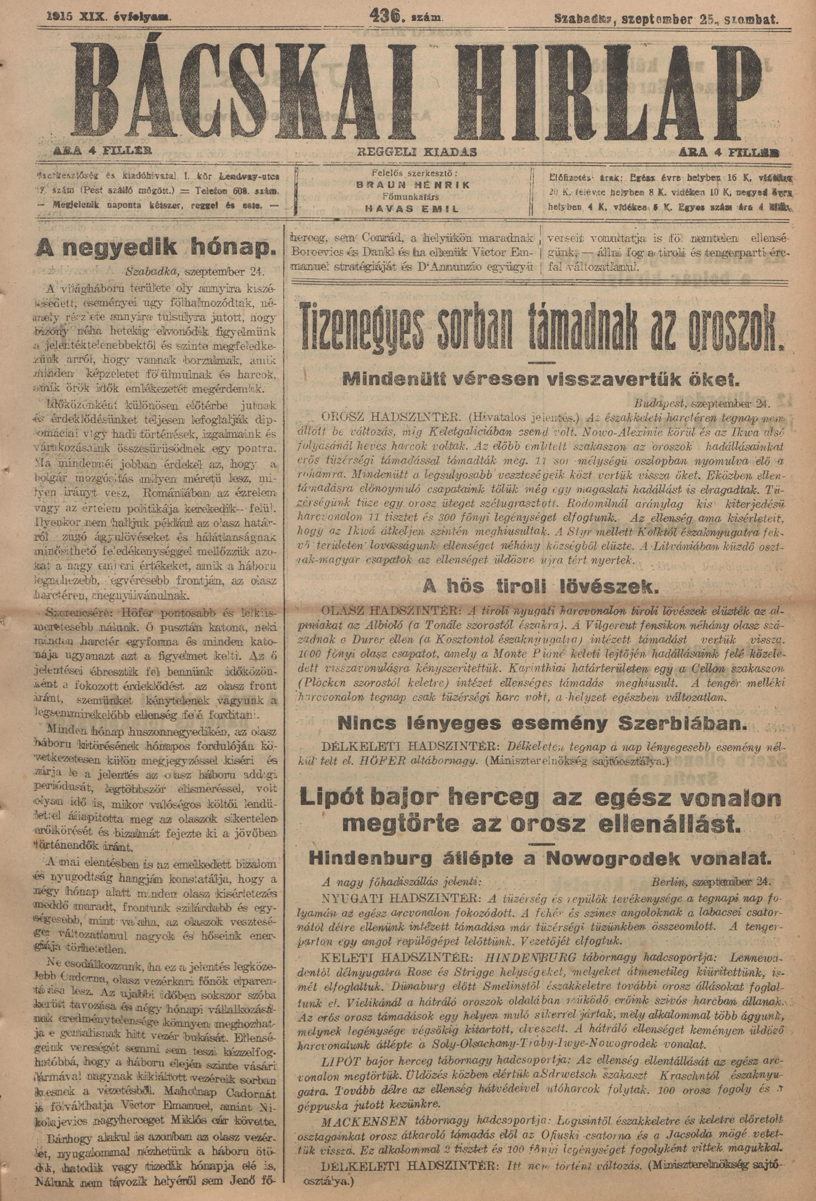 Bácskai Hirlap, 19. évf. 1915. szeptember 25. 436. sz.