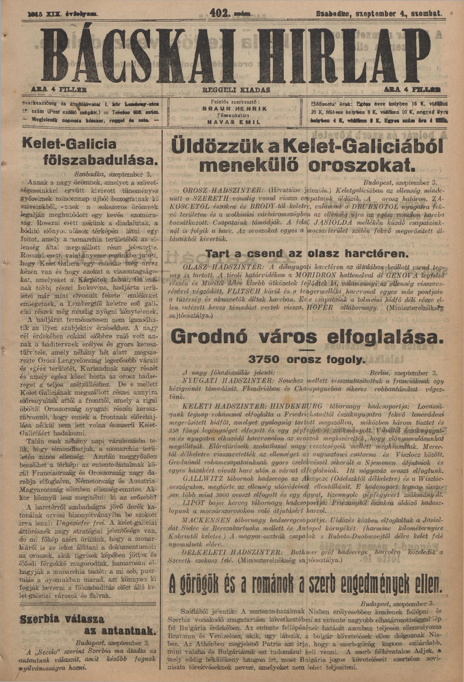 Bácskai Hirlap, 19. évf. 1915. szeptember 4. 402. sz.
