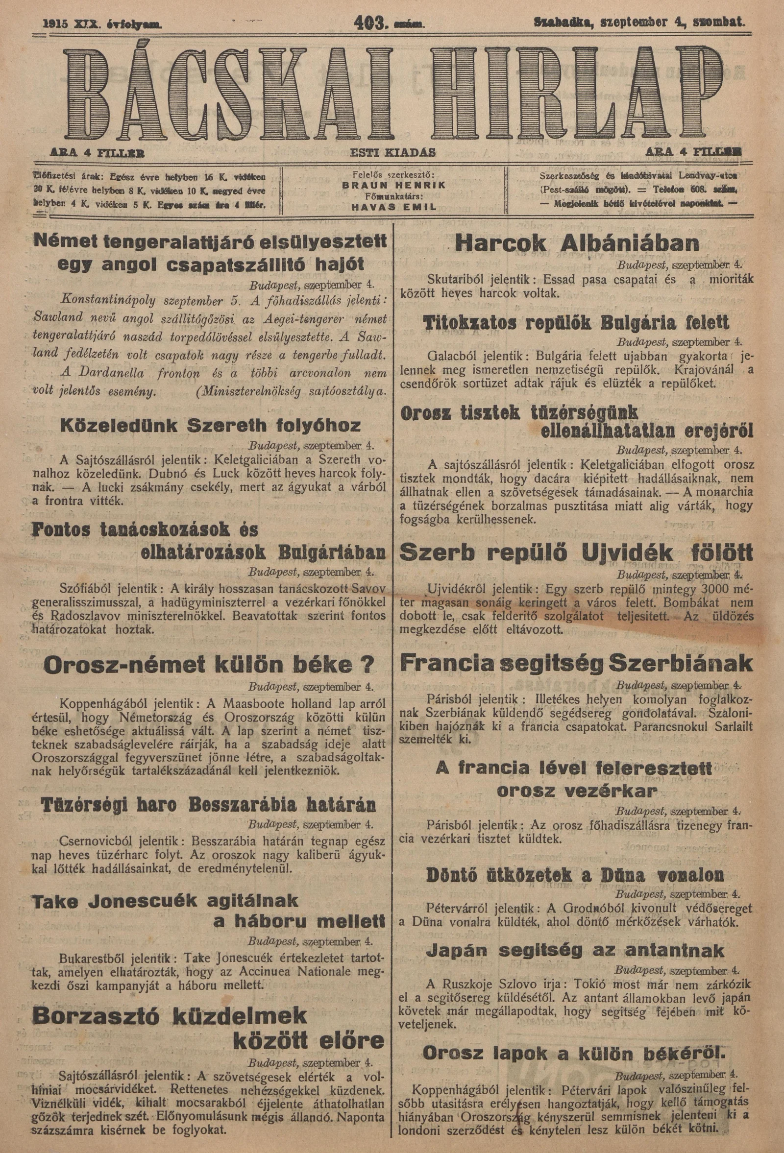 Bácskai Hirlap, 19. évf. 1915. szeptember 4. 403. sz.