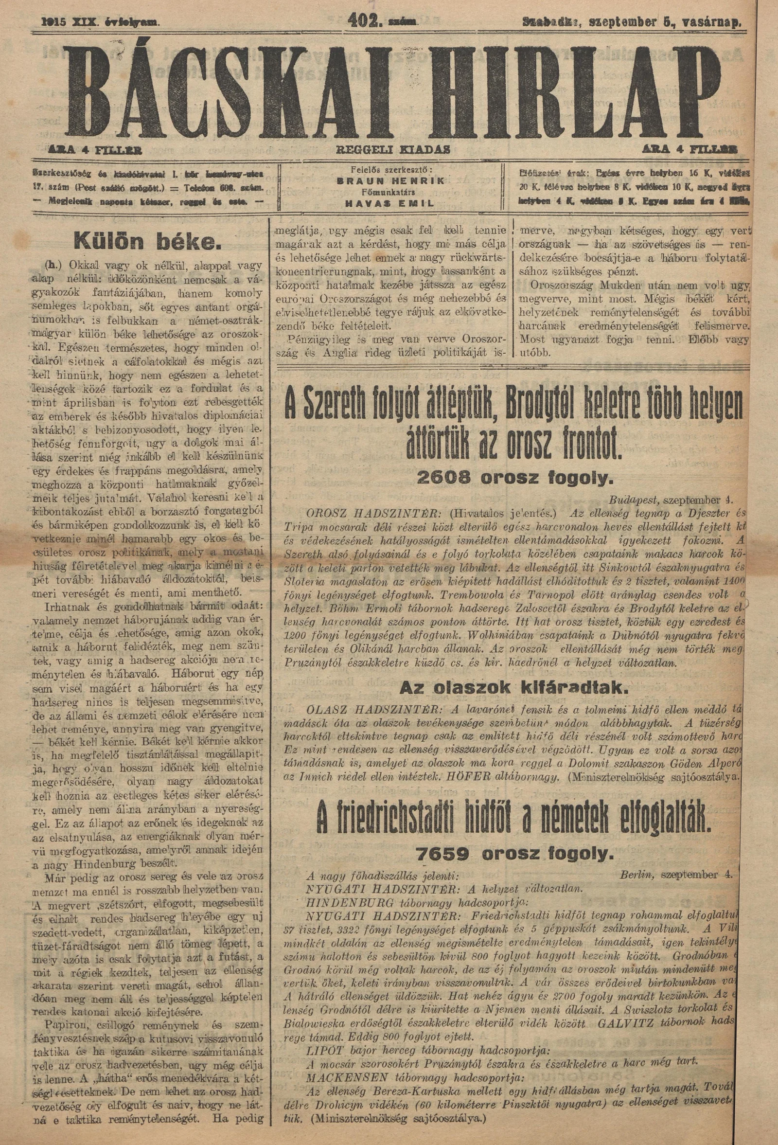 Bácskai Hirlap, 19. évf. 1915. szeptember 5. 404. sz.