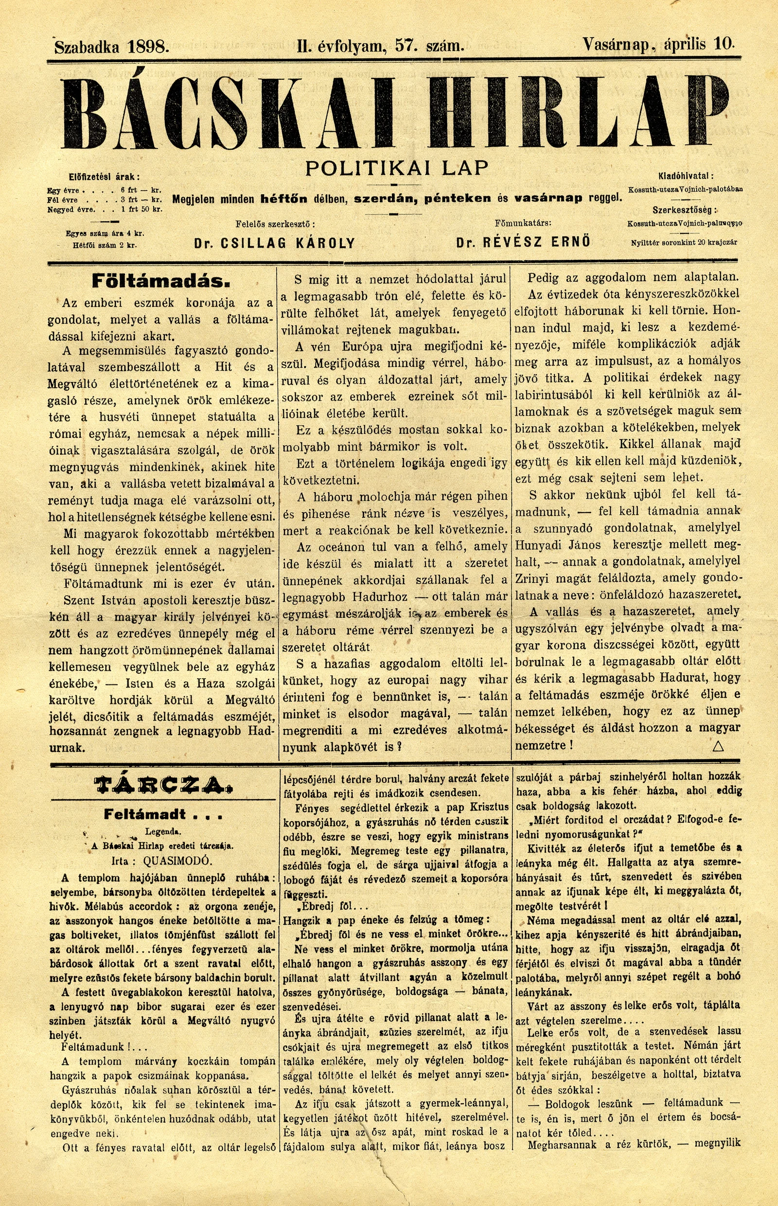 Bácskai Hirlap, 2. évf. 1898. április 10. 57. sz. 1–8. oldal