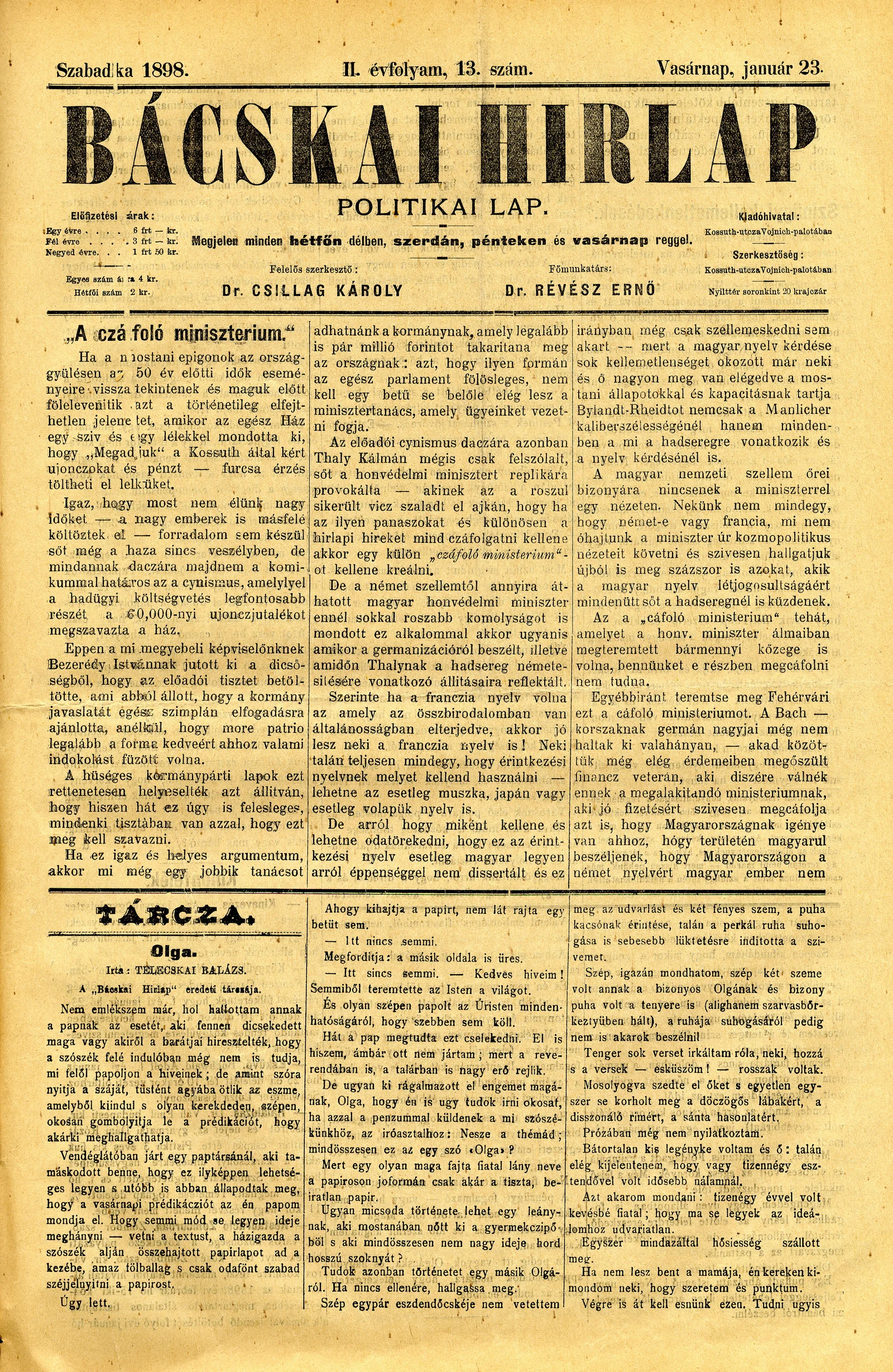 Bácskai Hirlap, 2. évf. 1898. január 23. 13. sz. 1–4. oldal