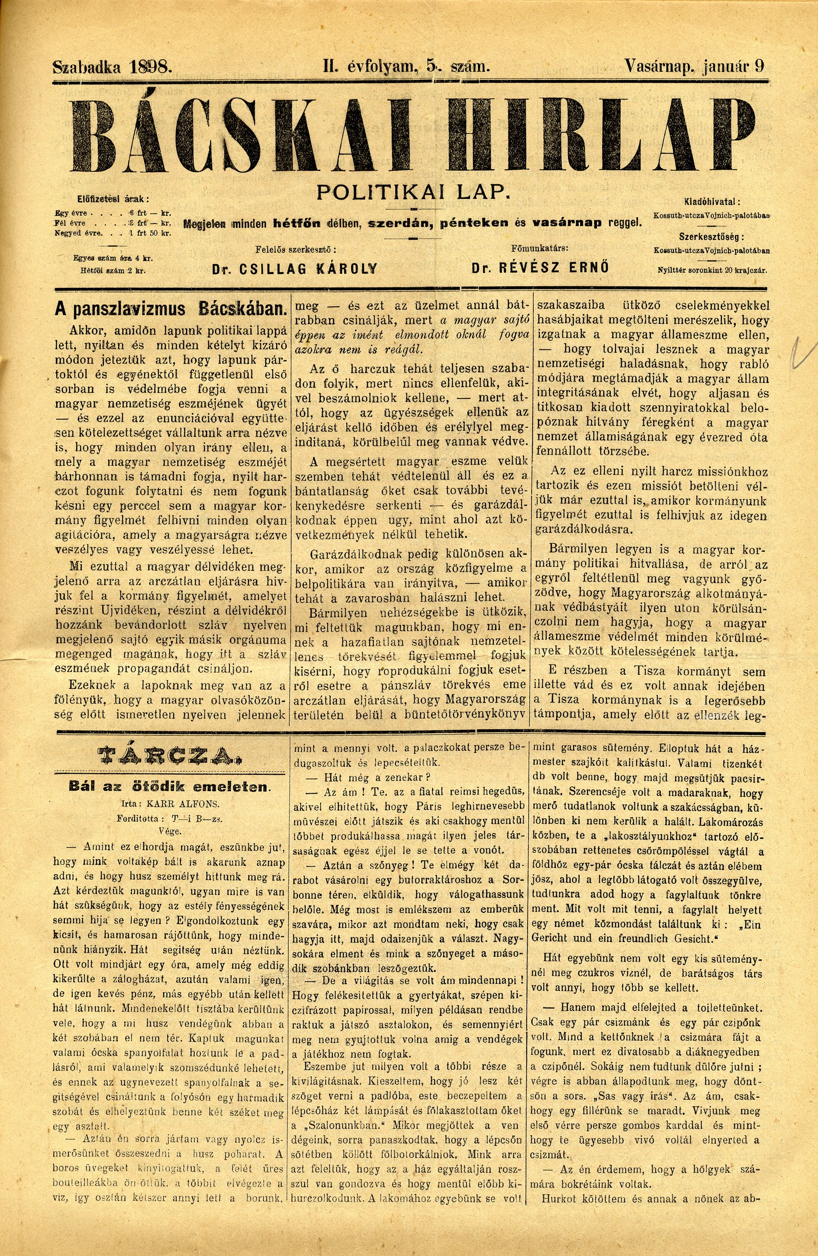Bácskai Hirlap, 2. évf. 1898. január 9. 5. sz. 1–4. oldal