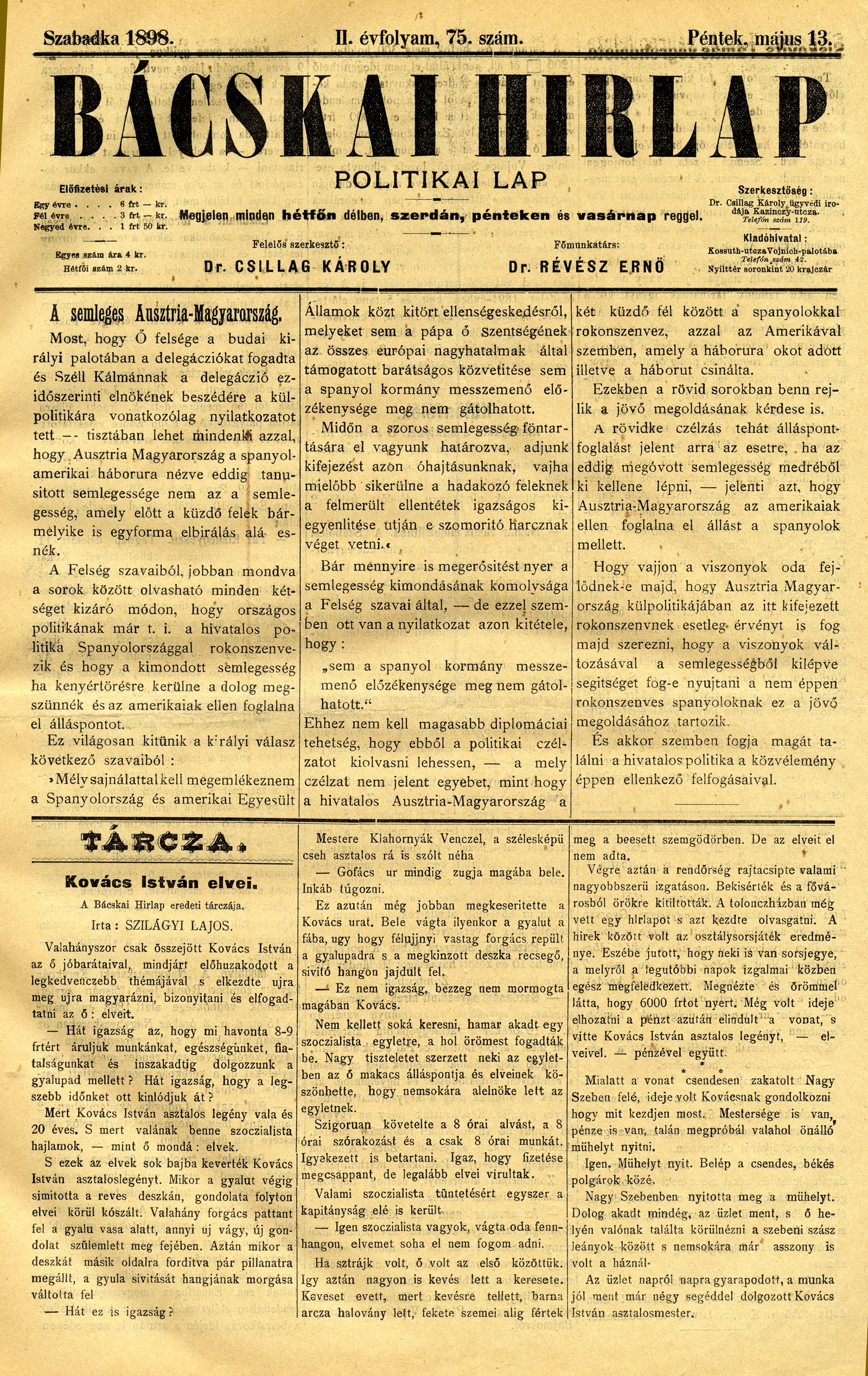 Bácskai Hirlap, 2. évf. 1898. május 13. 75. sz. 1–4. oldal