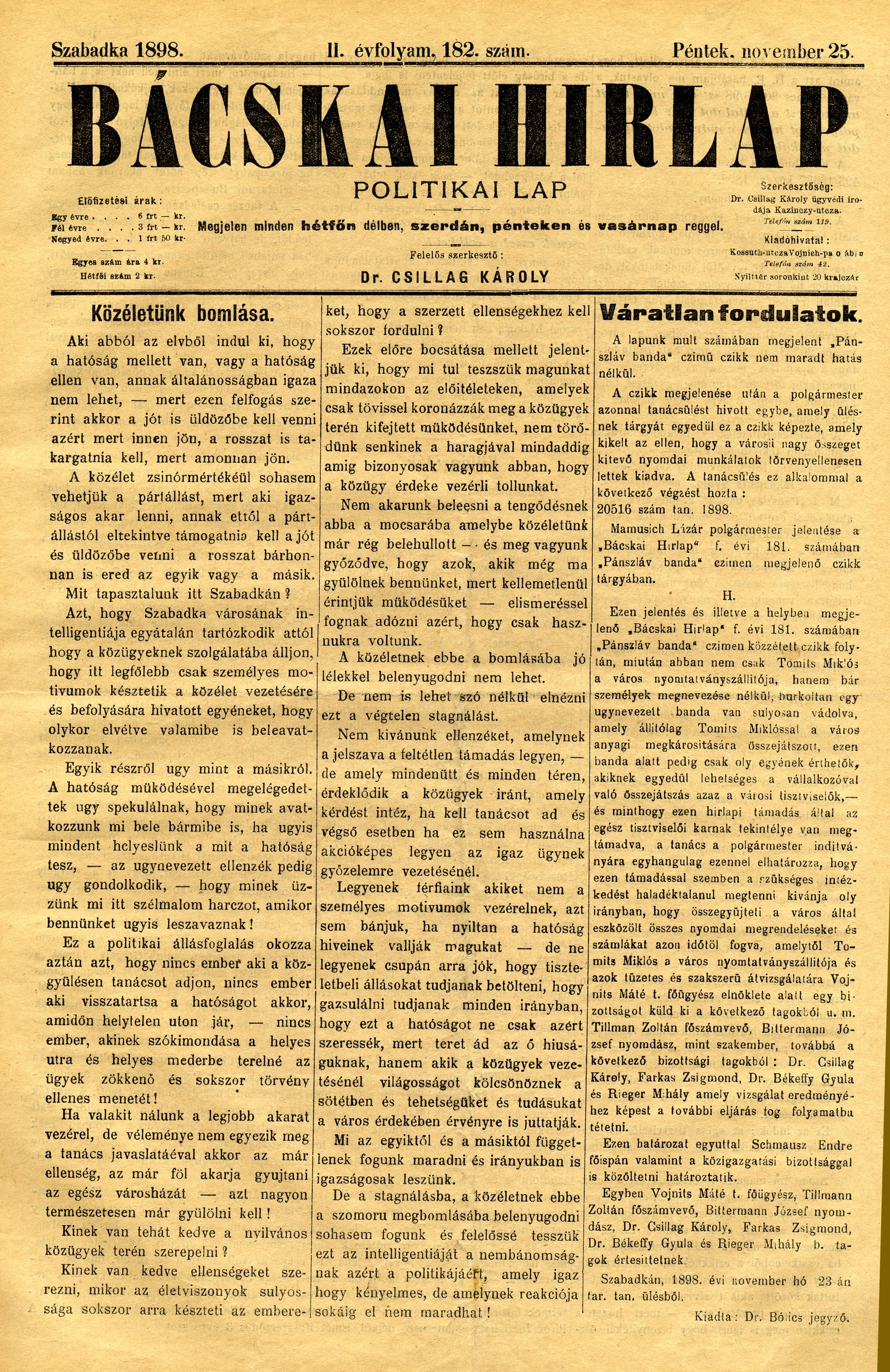 Bácskai Hirlap, 2. évf. 1898. november 25. 182. sz. 1–4. oldal