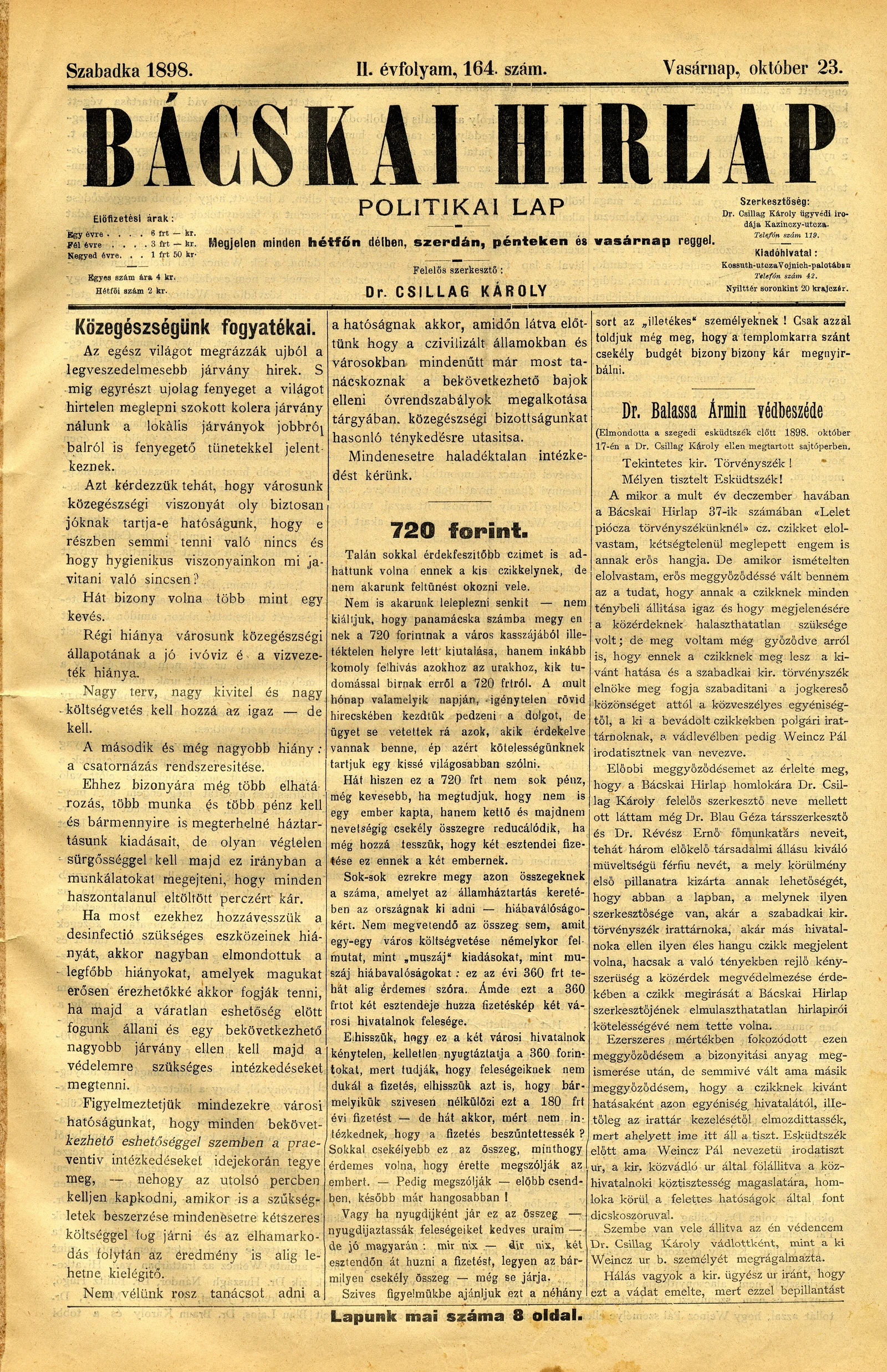 Bácskai Hirlap, 2. évf. 1898. október 23. 164. sz. 1–8. oldal