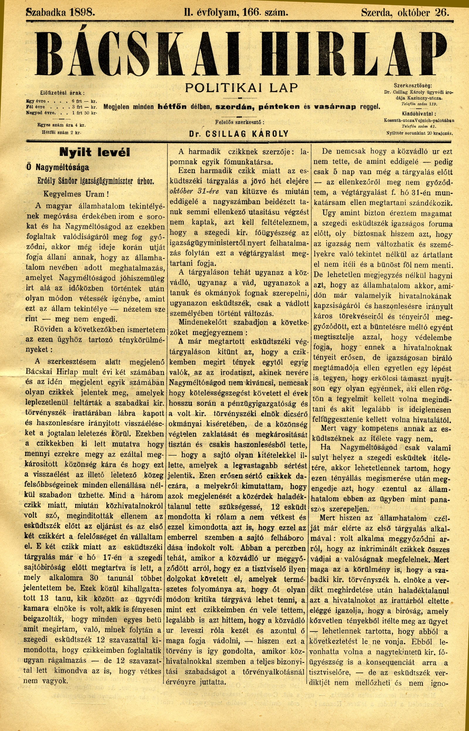 Bácskai Hirlap, 2. évf. 1898. október 26. 166. sz. 1–4. oldal