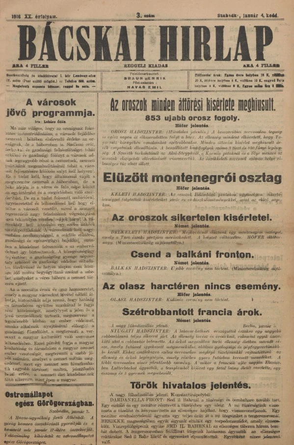 Bácskai Hirlap, 20. évf. 1914. január 4. 3. sz.