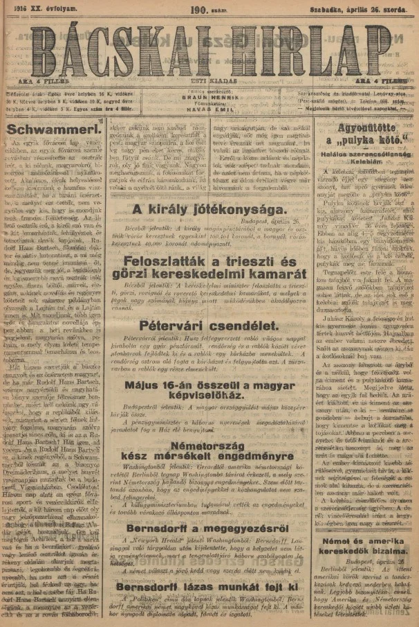Bácskai Hirlap, 20. évf. 1916. április 26. 190. sz.