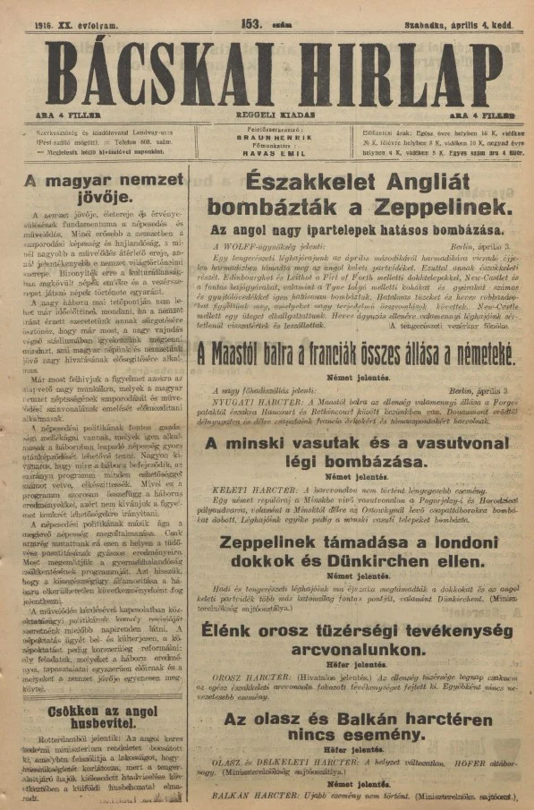 Bácskai Hirlap, 20. évf. 1916. április 4. 153. sz.