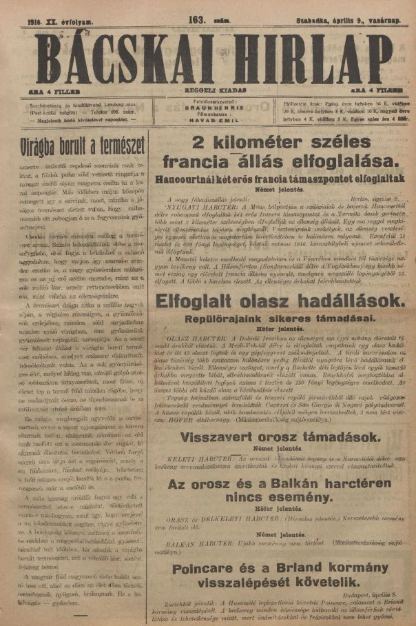 Bácskai Hirlap, 20. évf. 1916. április 9. 163. sz.