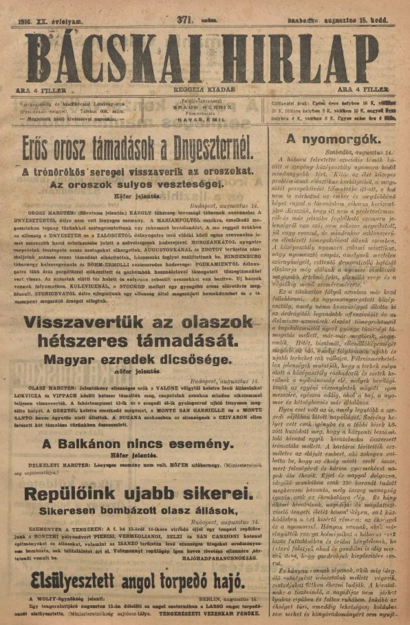 Bácskai Hirlap, 20. évf. 1916. augusztus 15. 371. sz.