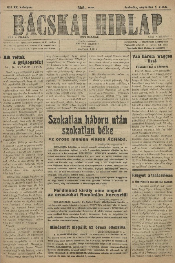 Bácskai Hirlap, 20. évf. 1916. augusztus 2. 350. sz.
