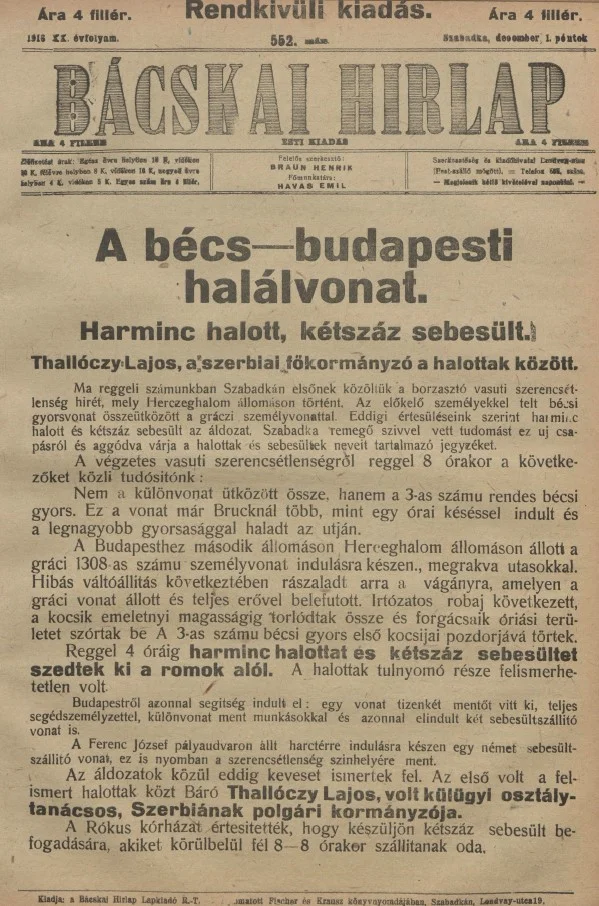 Bácskai Hirlap, 20. évf. 1916. december 1. 552. sz.