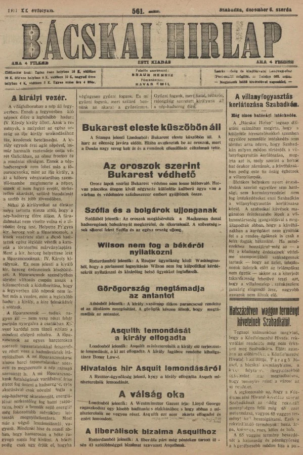 Bácskai Hirlap, 20. évf. 1916. december 11. 567. sz.