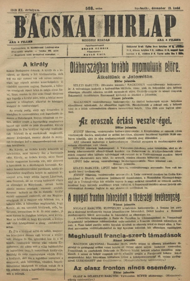 Bácskai Hirlap, 20. évf. 1916. december 12. 568. sz.