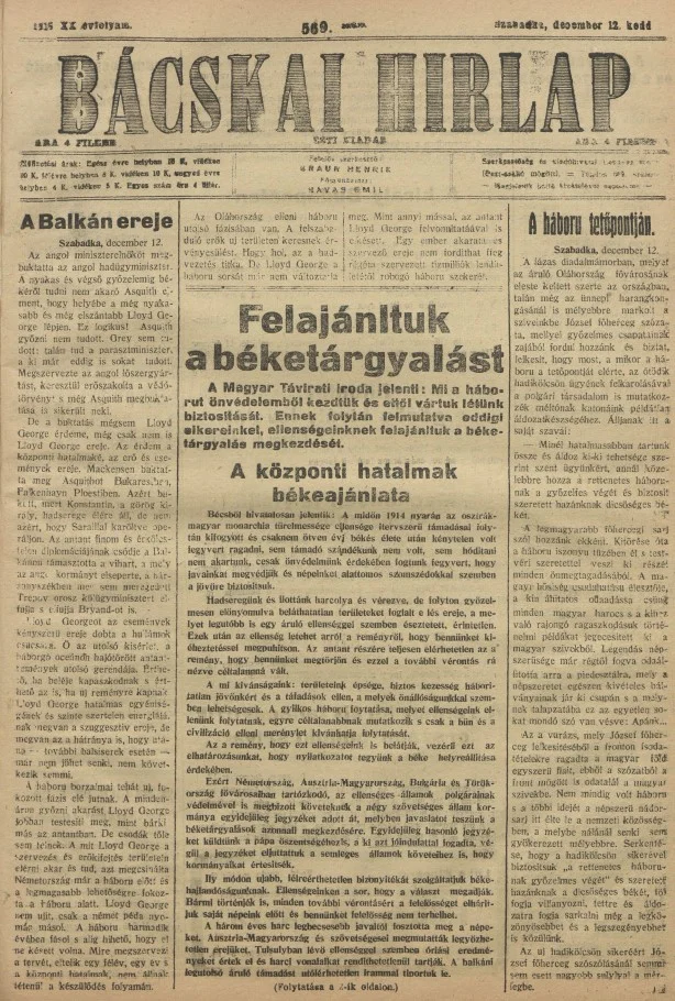 Bácskai Hirlap, 20. évf. 1916. december 12. 569. sz.